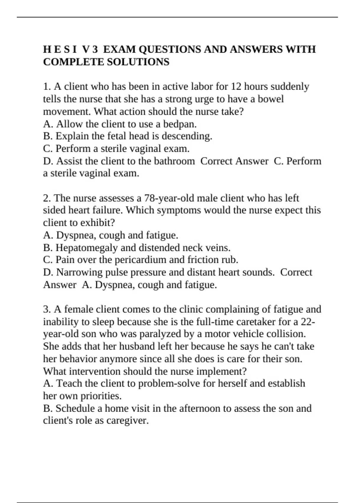 H E S I V 3 EXAM QUESTIONS AND ANSWERS WITH COMPLETE SOLUTIONS