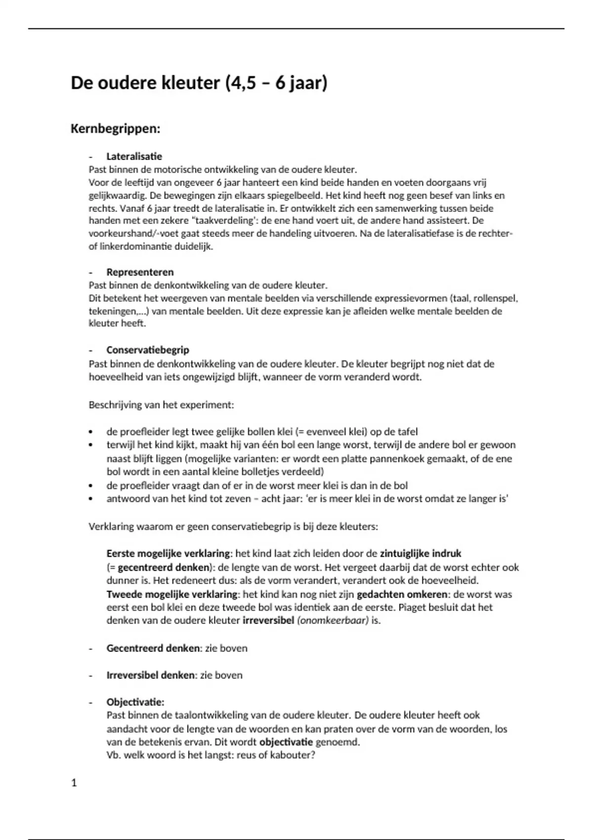 denken van de oudere kleuter irreversibel (onomkeerbaar) is.