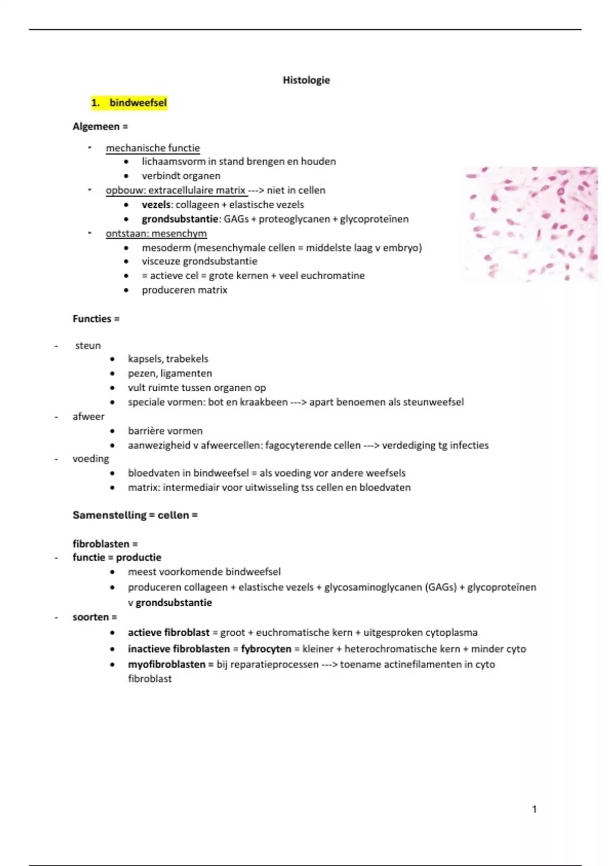 • actieve fibroblast = groot + euchromatische kern + uitgesproken cytoplasma