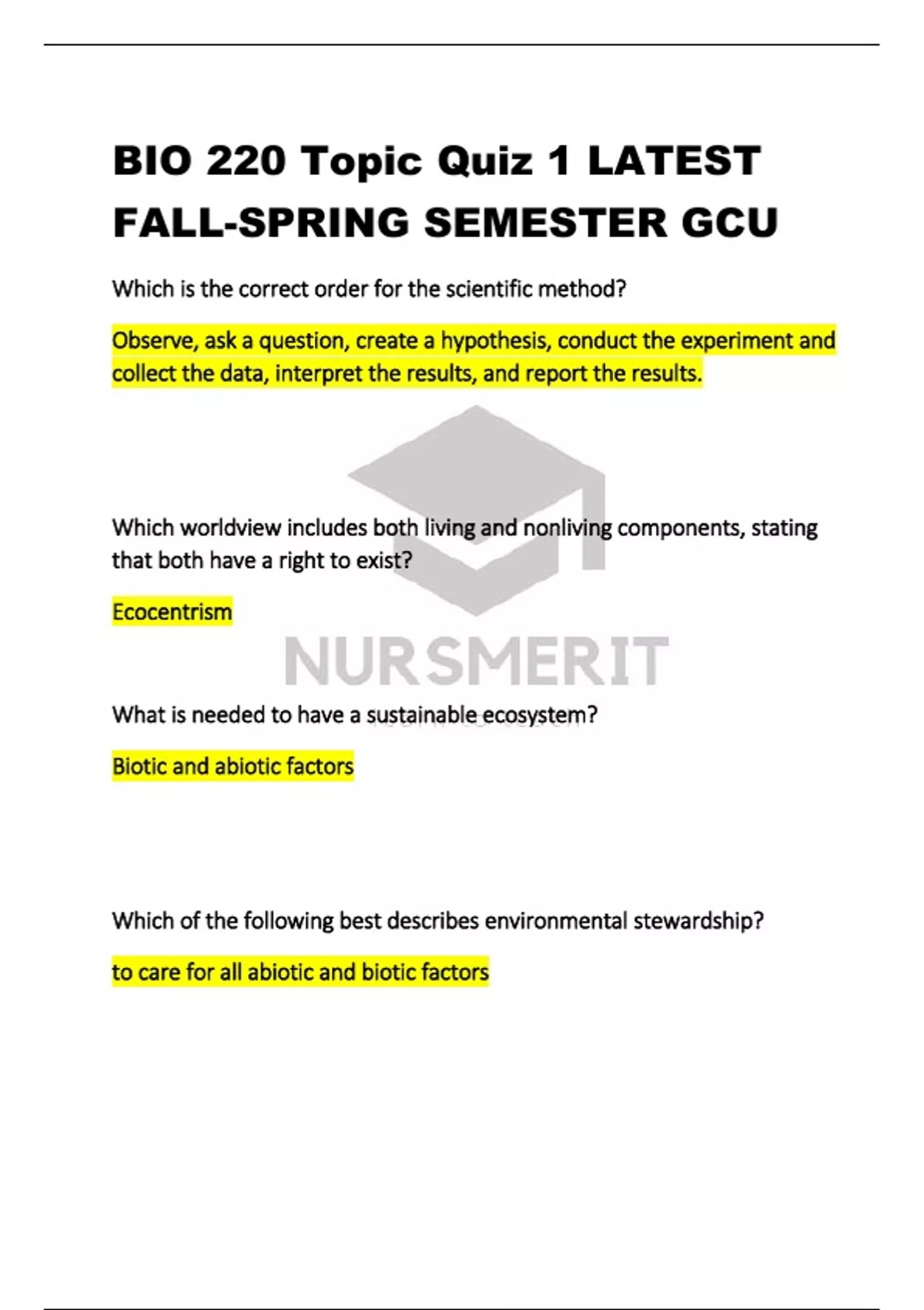 BIO 220 Topic Quiz 1 LATEST