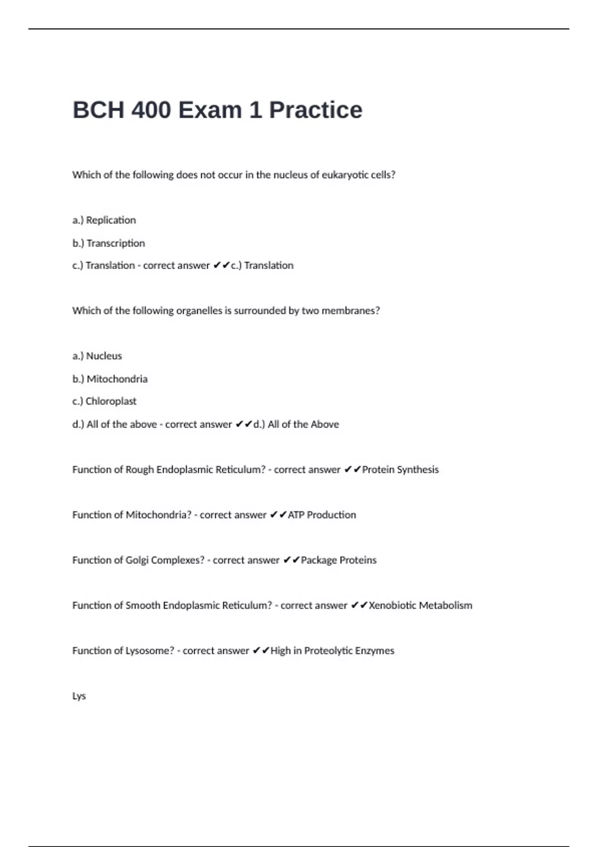 BCH 400 Exam 1 Practice questions well answered to pass