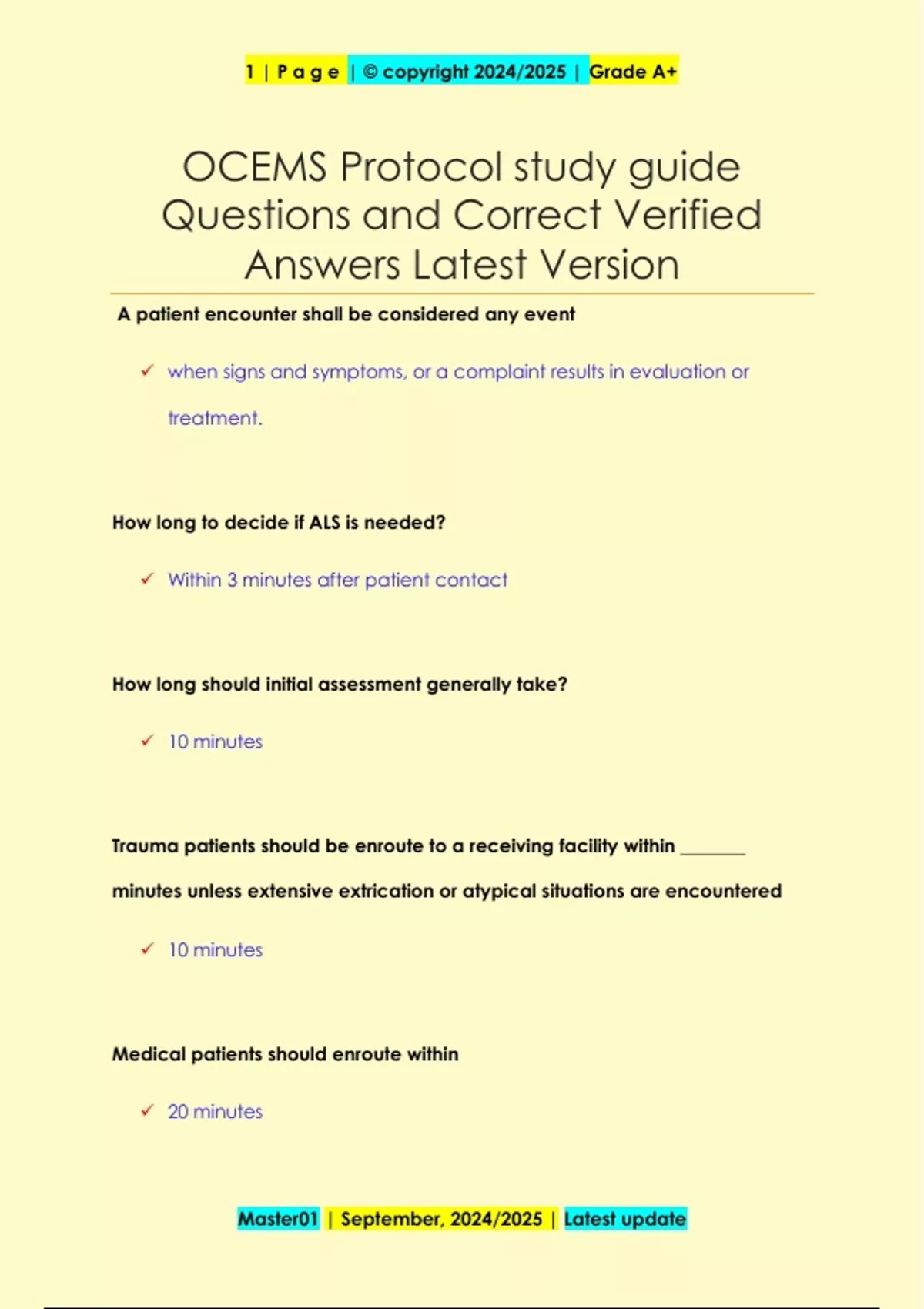 OCEMS Protocol study guide Questions and Correct Verified Answers Latest Versio