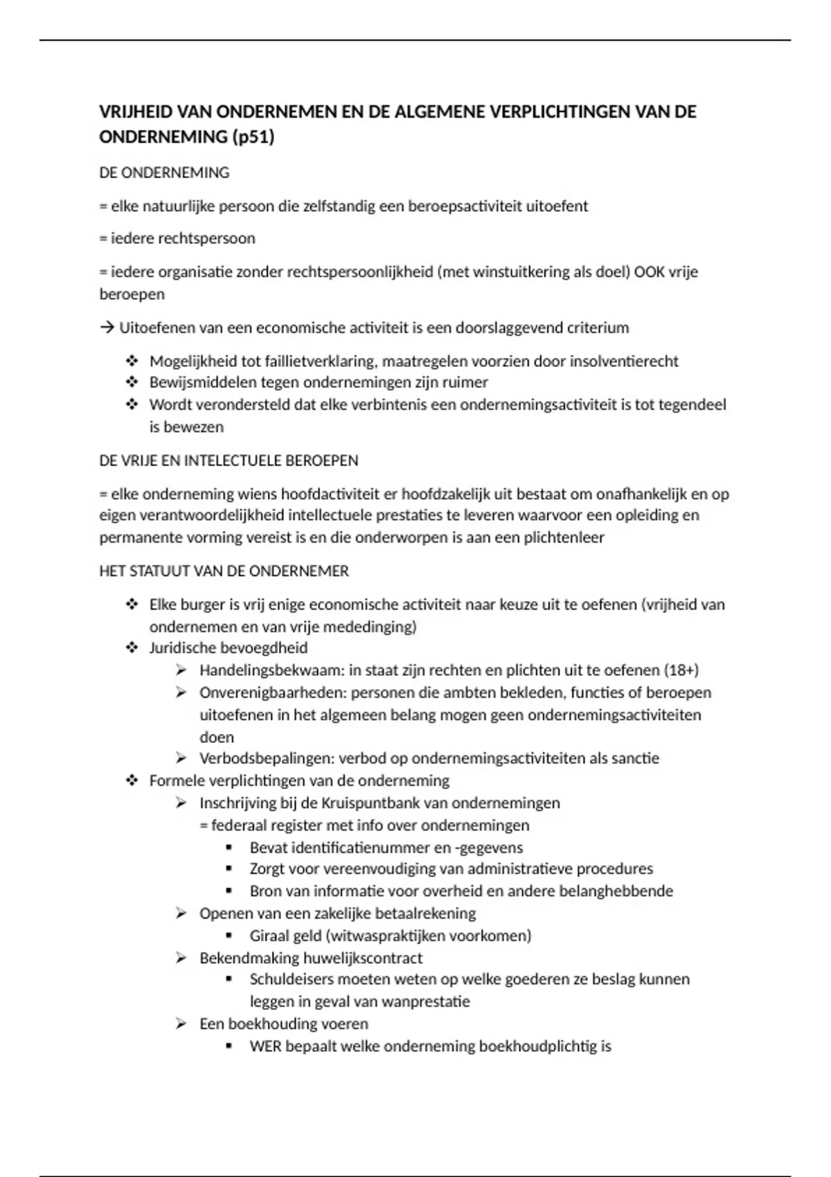 samenvatting ondernemingsrecht, vrije en intelectuele beroepen en handelszaak, huurcontract handelszaak,
