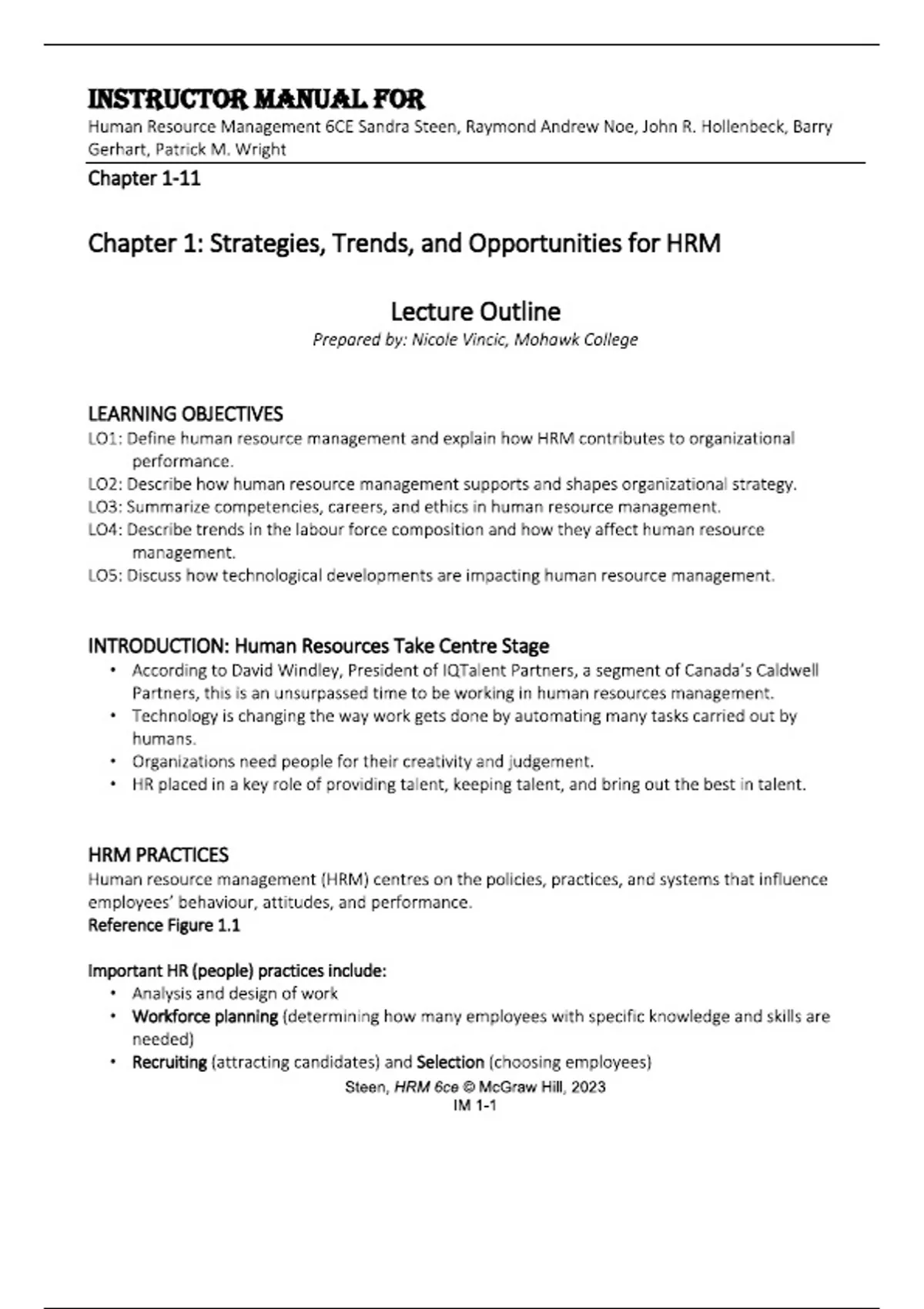 Instructor Manual for Human Resource Management 6CE Sandra Steen, Raymond