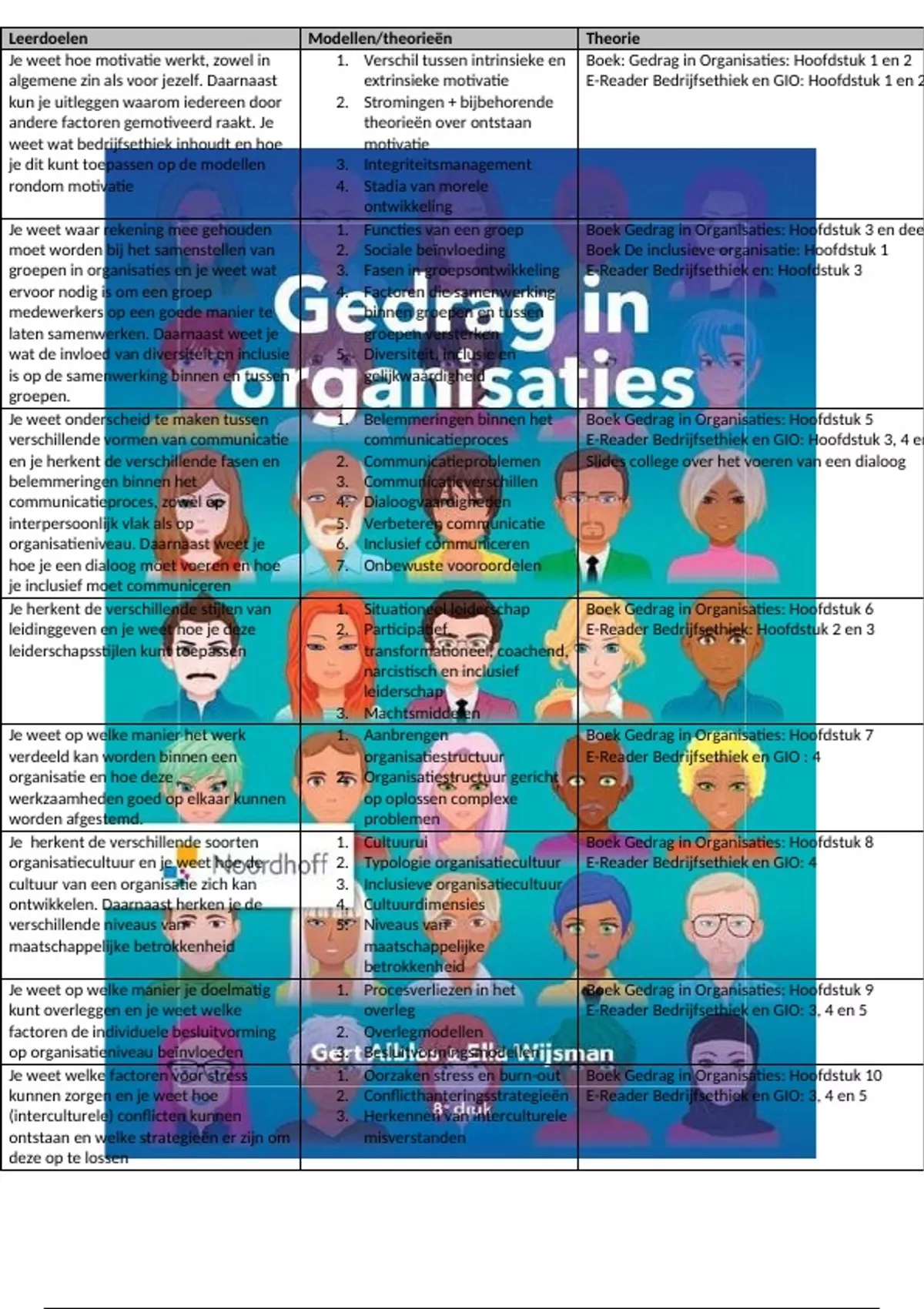 Samenvatting voor alle leerdoelen voor het vak Gedrag in organisaties. Hiervoor is het boek Gedrag in Organisaties (8e druk) van Ella Wijsman en Gert Alblas gebruikt. Alle punten zijn uitgebreid omschreven