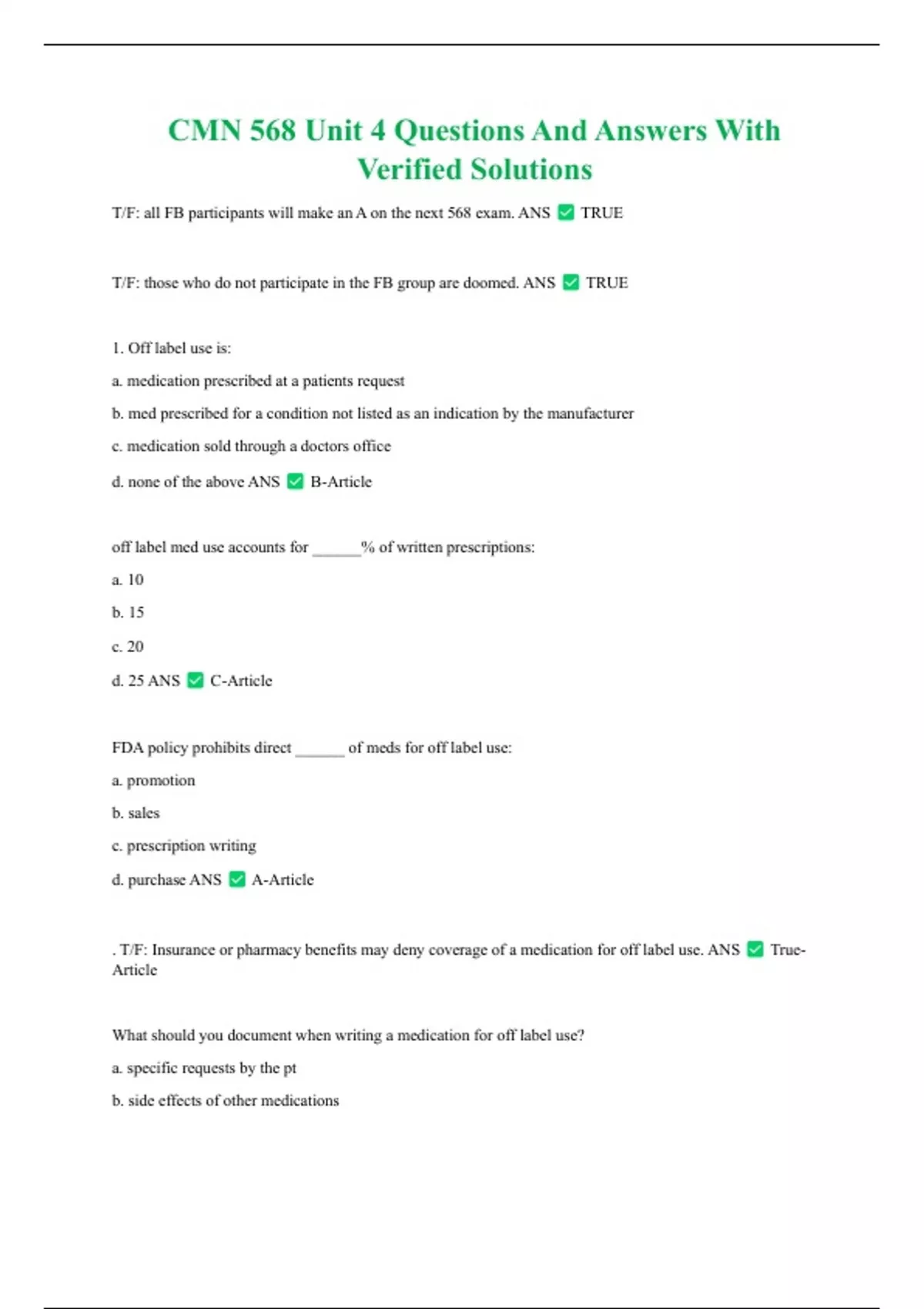 T/F: all FB participants will make an A on the next 568 exam. ANS TRUE