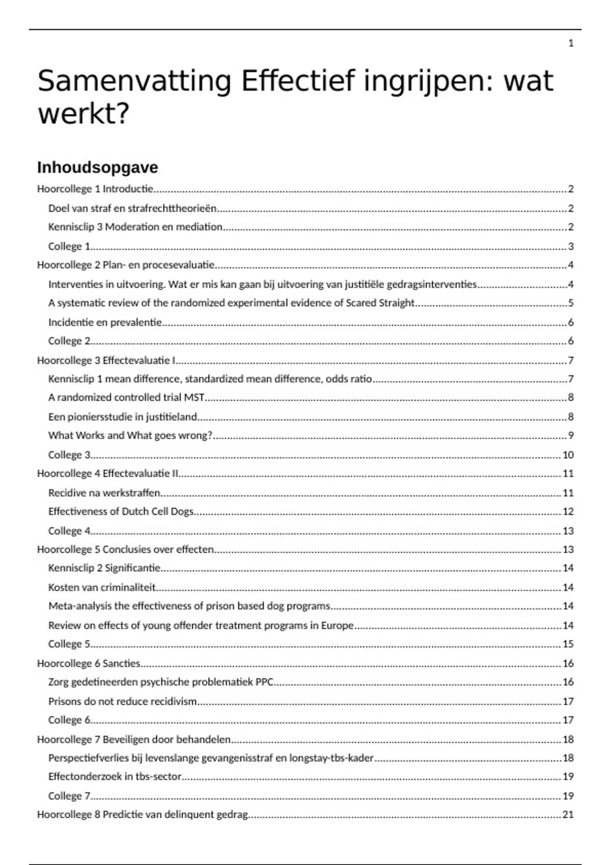 Effectief ingrijpen: wat werkt? Samenvatting van alle hoorcolleges, literatuur en kennisclips