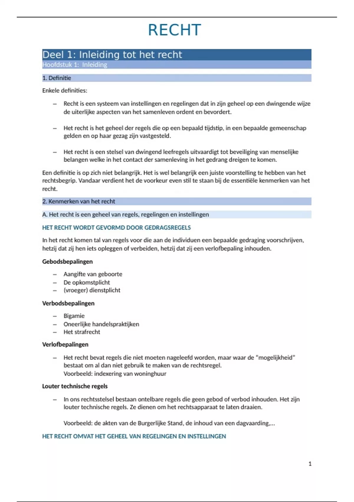 Samenvatting van Recht met notities van de les en aangevuld met de cursus.