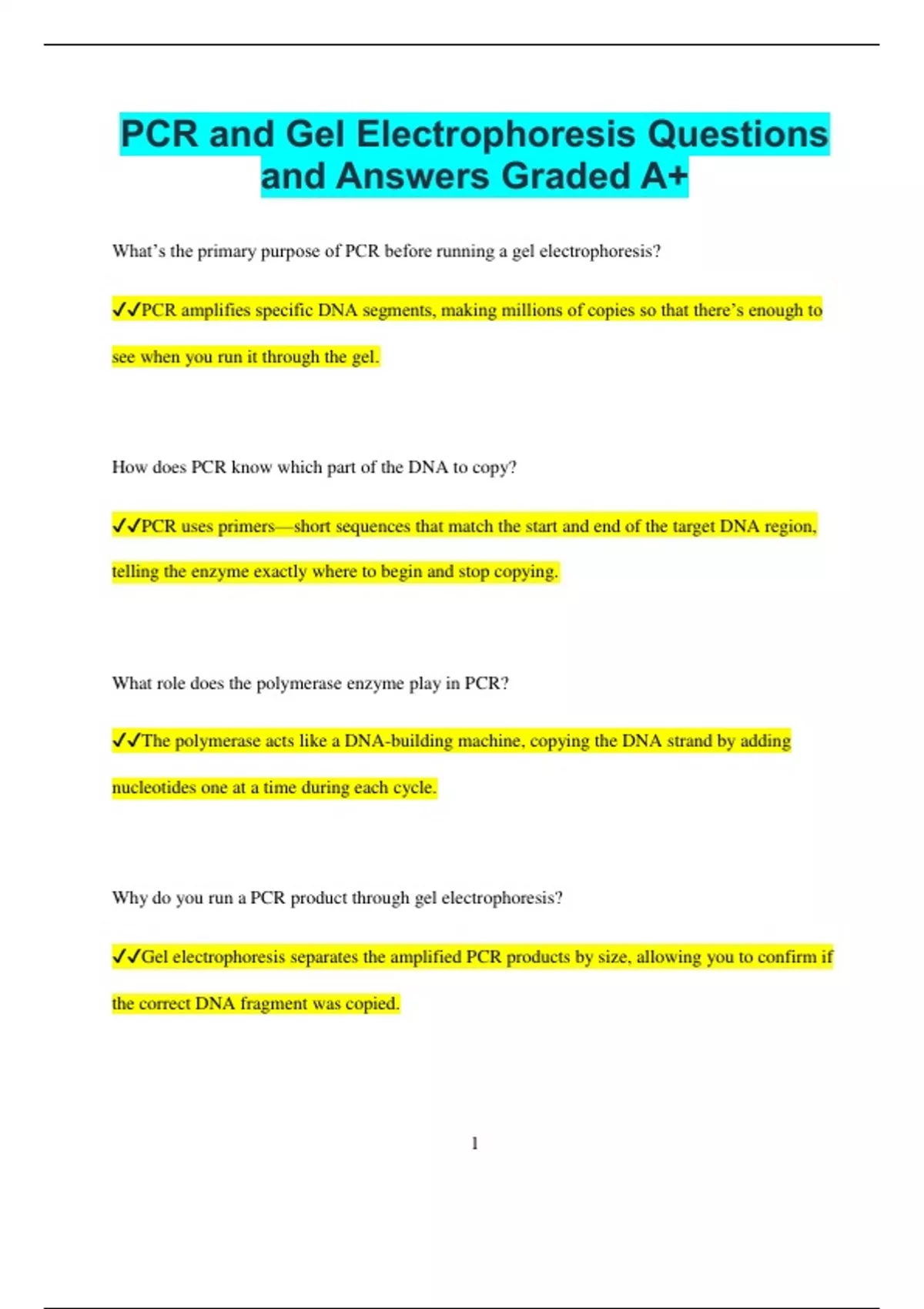 PCR and Gel Electrophoresis Questions and Answers Graded A+