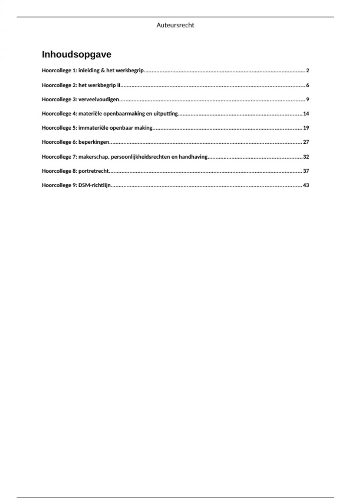 Alle hoorcollege aantekeningen auteursrecht 2023/2024 RU