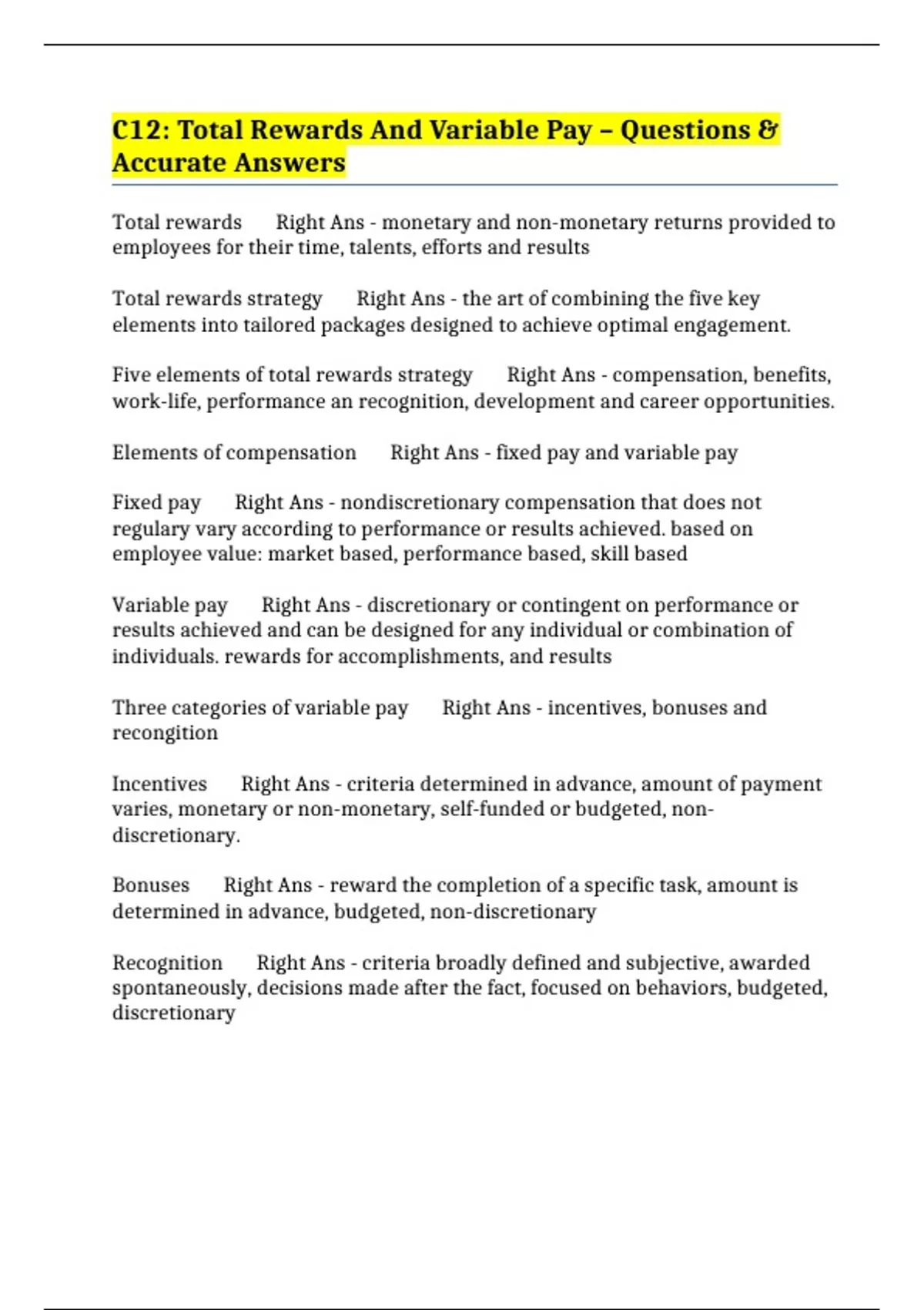 C12: Total Rewards And Variable Pay – Questions & Accurate Answers