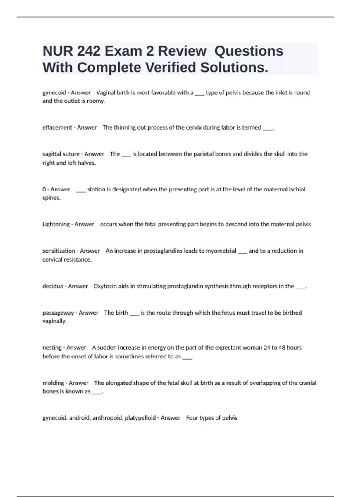 NUR 242 Exam 2 Review Questions With Complete Verified Solutions.