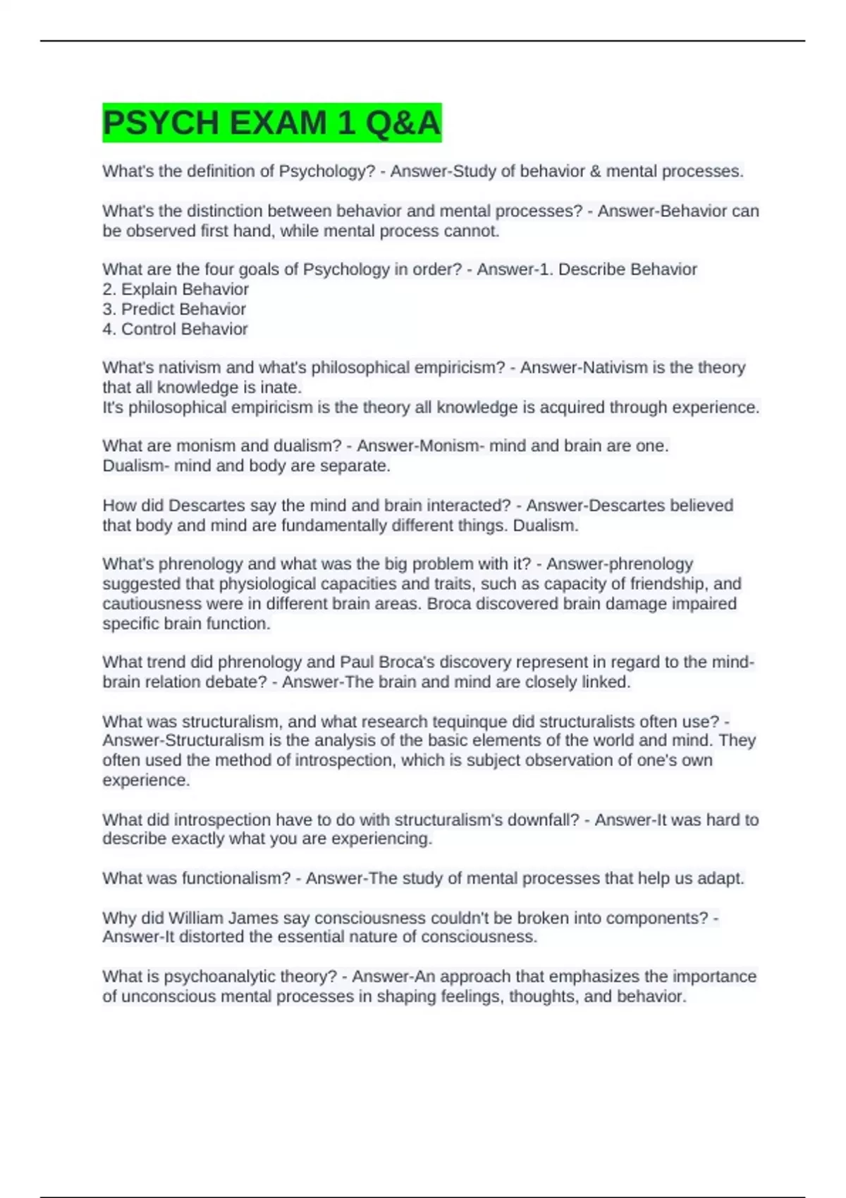 What's cognitive psychology? - Answer-Scientific study of mental processes.