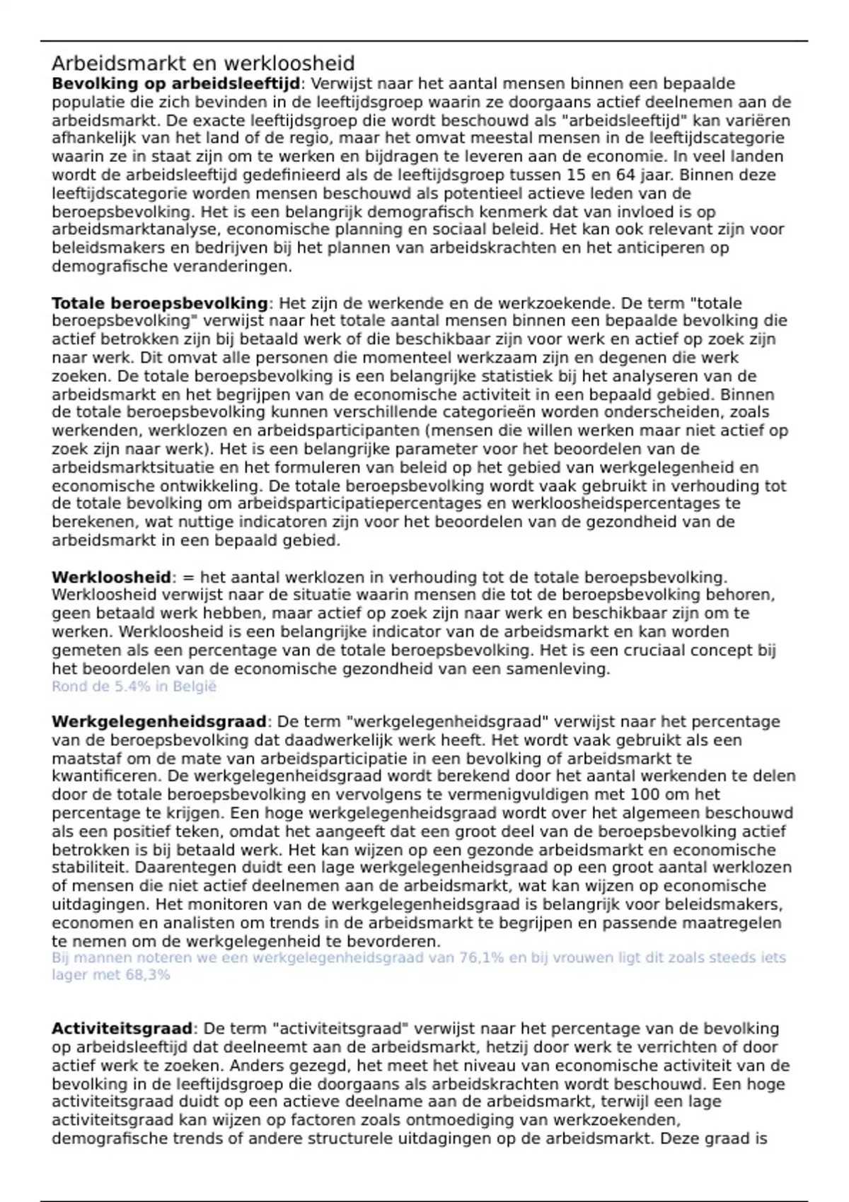 Werkloosheid: = het aantal werklozen in verhouding tot de totale beroepsbevolking.