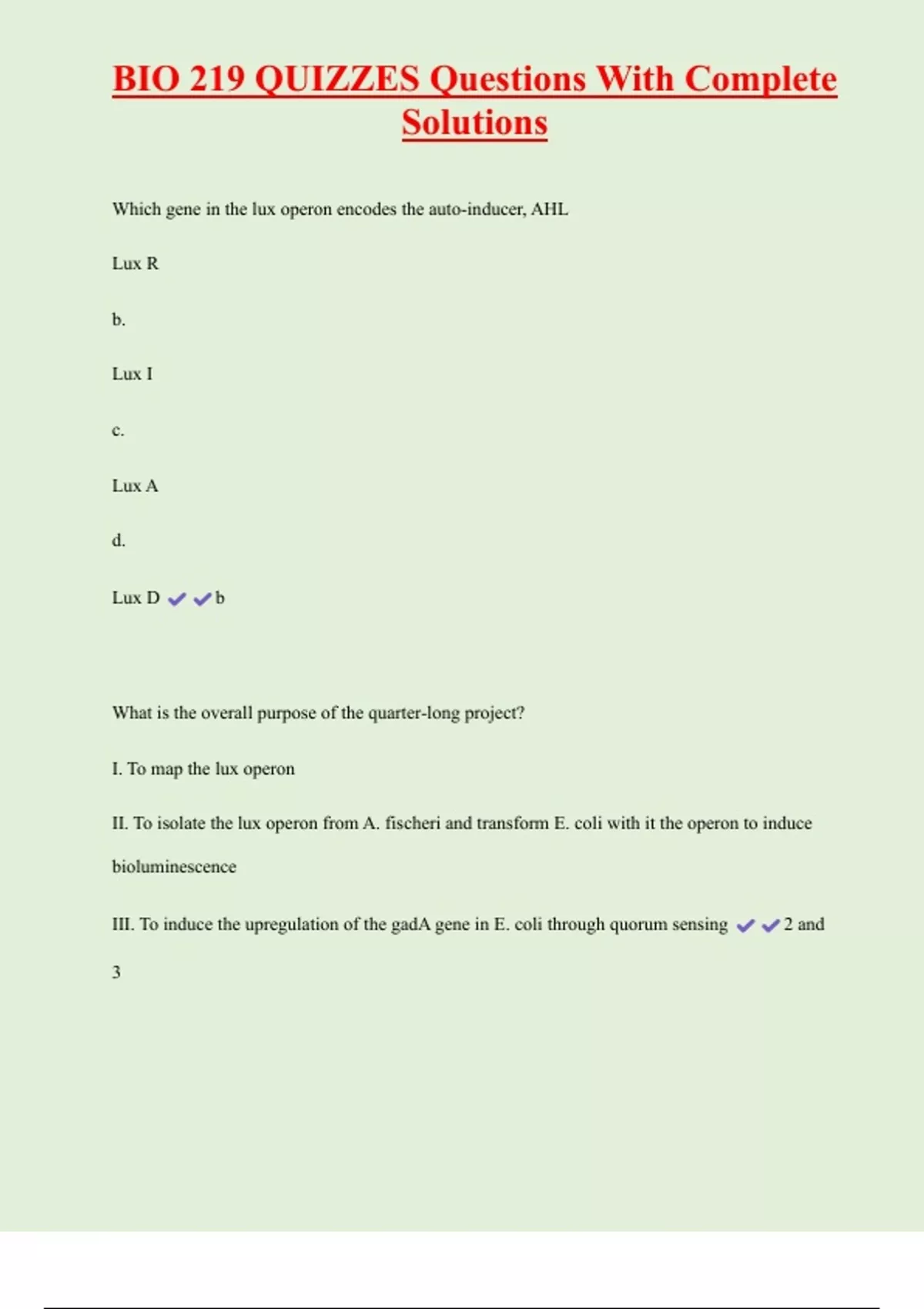 , BIO 219 QUIZZES Questions With Complete