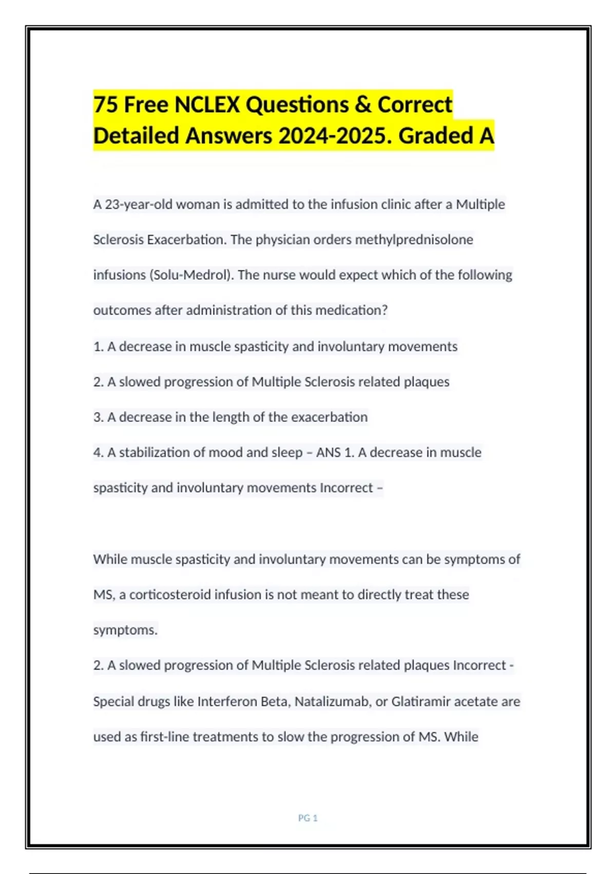 75 Free NCLEX Questions & Correct Detailed Answers . Graded A (1).docx