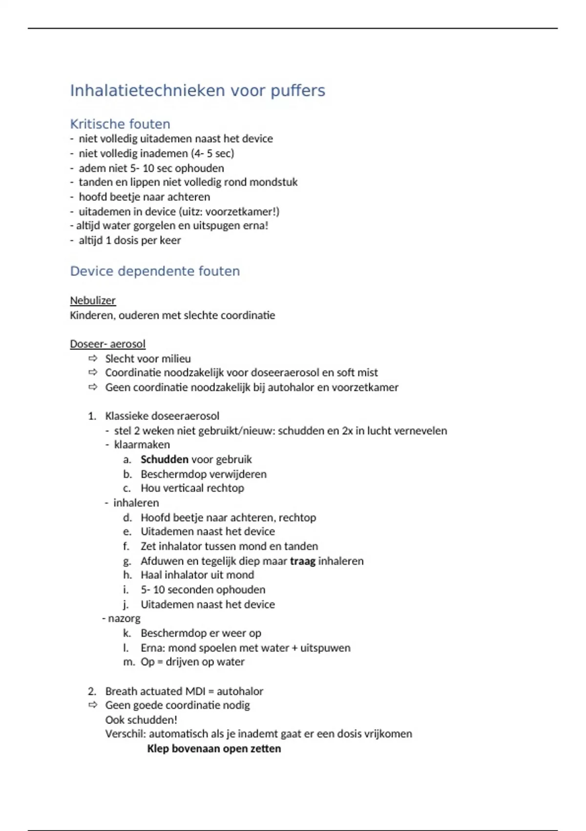 samenvatting stationsproef V-lijn inhalatietechnieken puffers + piekstroom