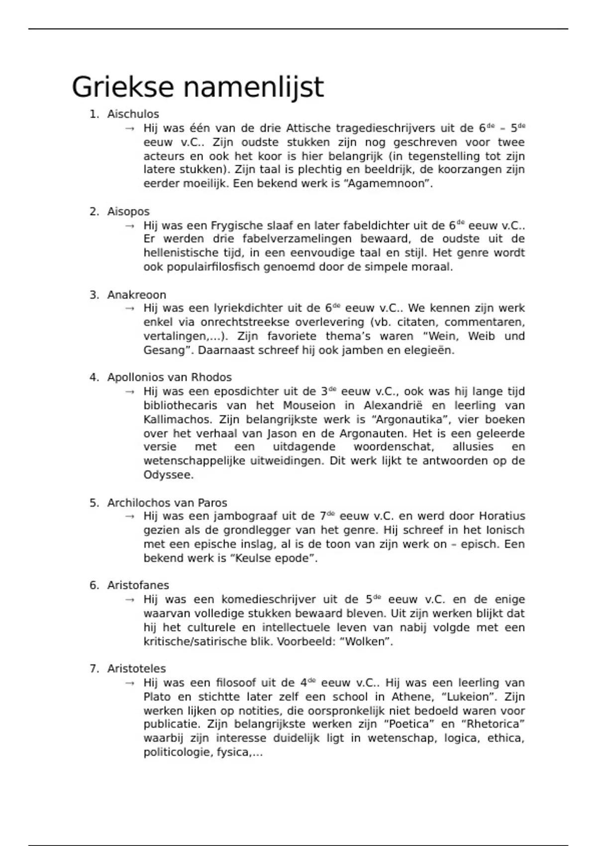 Samenvatting Griekse namenlijst - Literatuur van de Oudheid