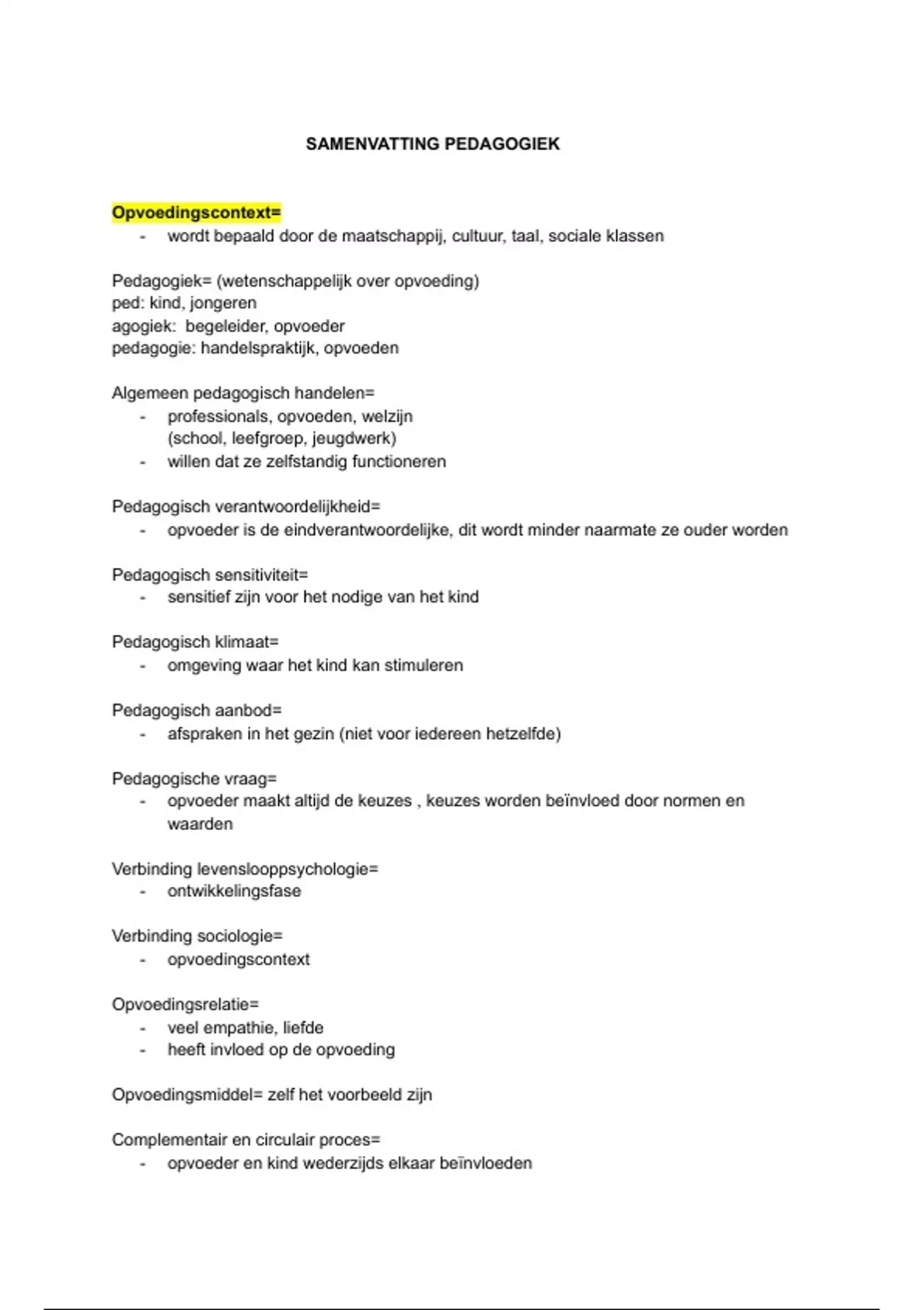 SAMENVATTING PEDAGOGIEK