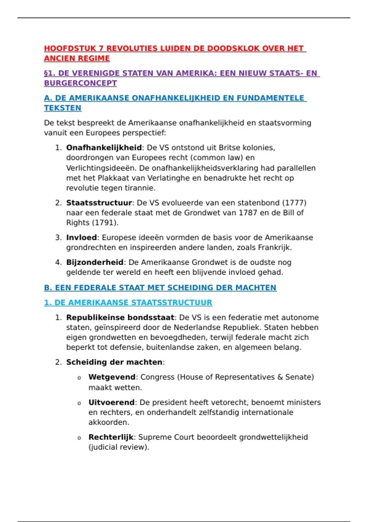 De tekst bespreekt de Amerikaanse onafhankelijkheid en staatsvorming