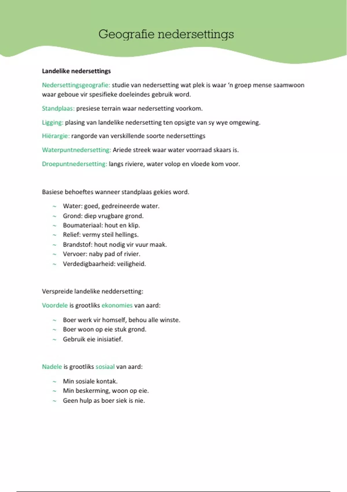 Summary Geografie Nedersettings- Graad 12