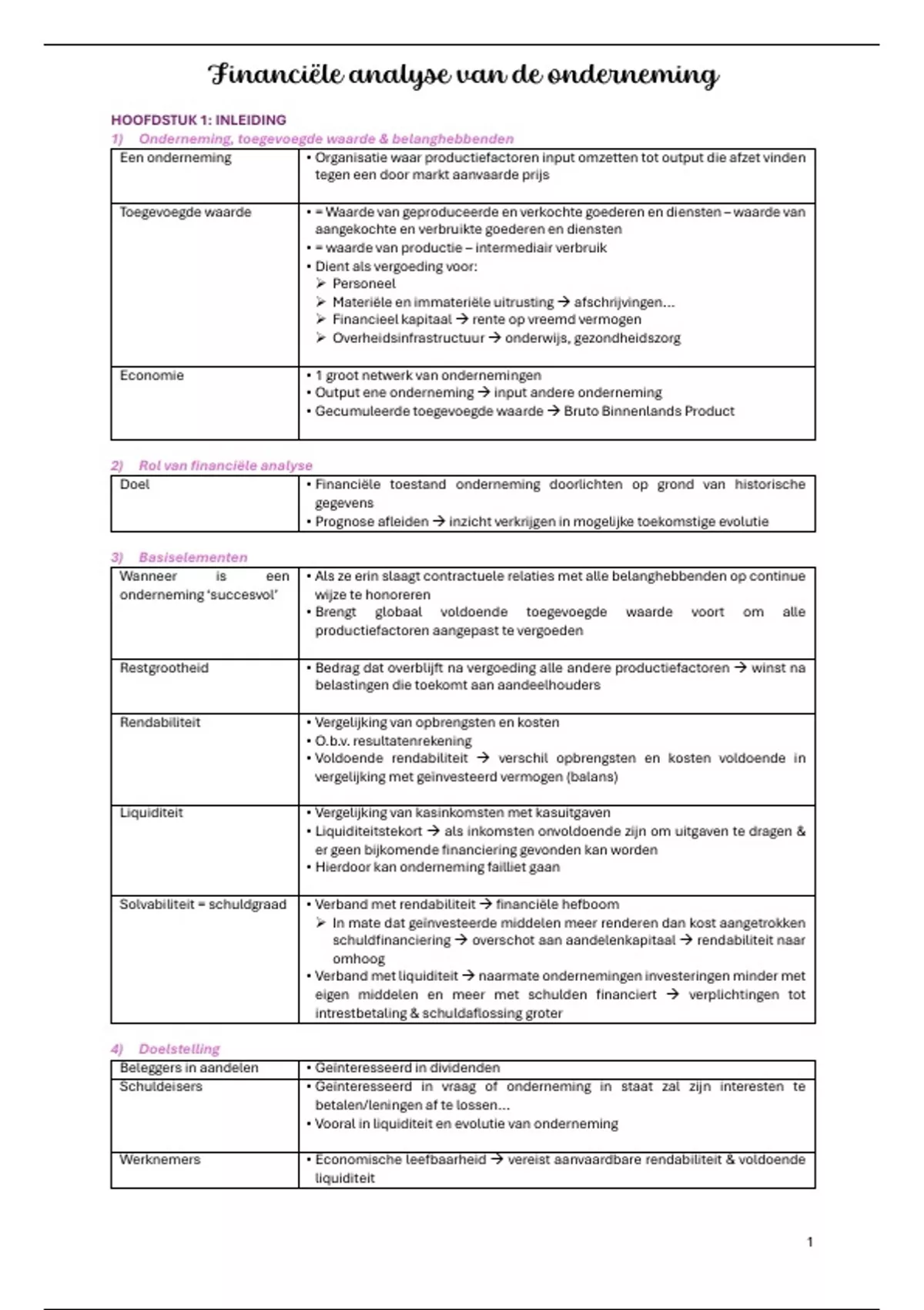 1) Onderneming, toegevoegde waarde & belanghebbenden