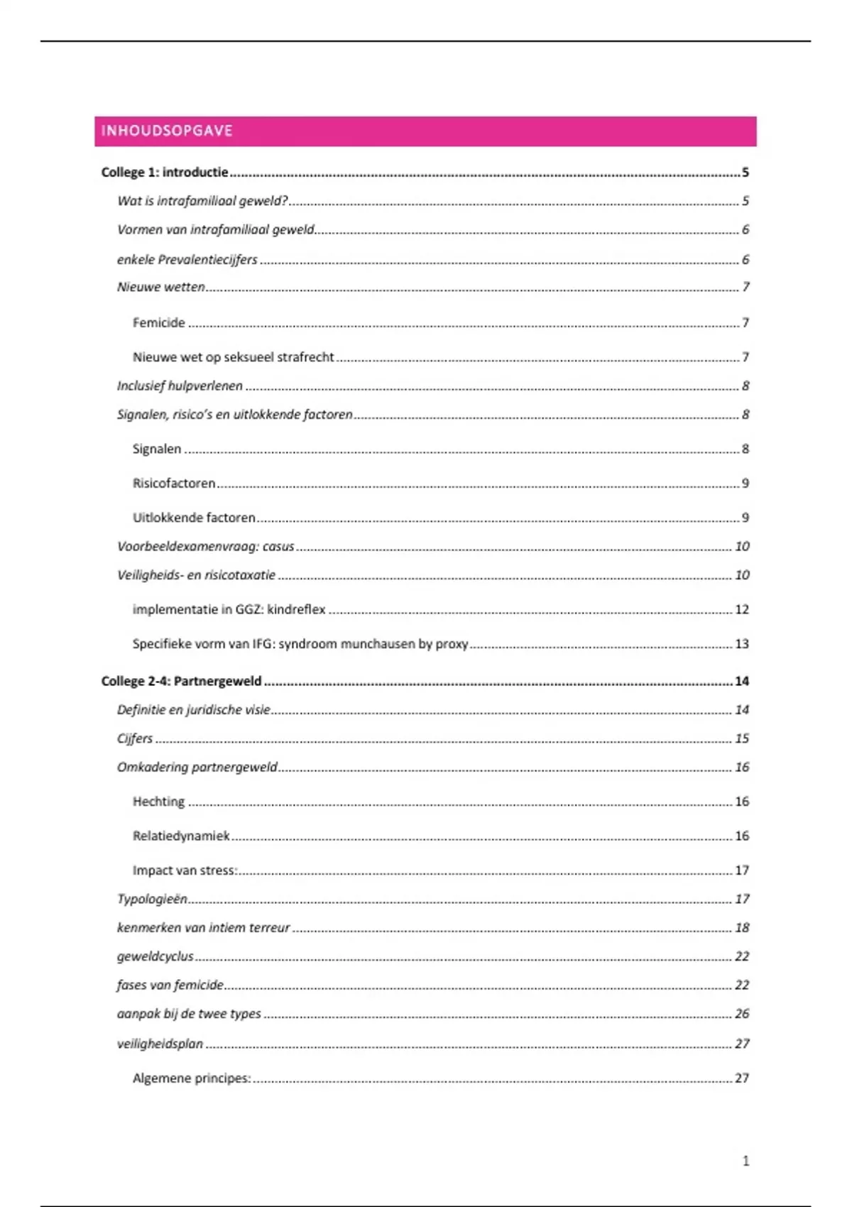 College 5: Getuigenis partnergeweld............................................................................................................. 28