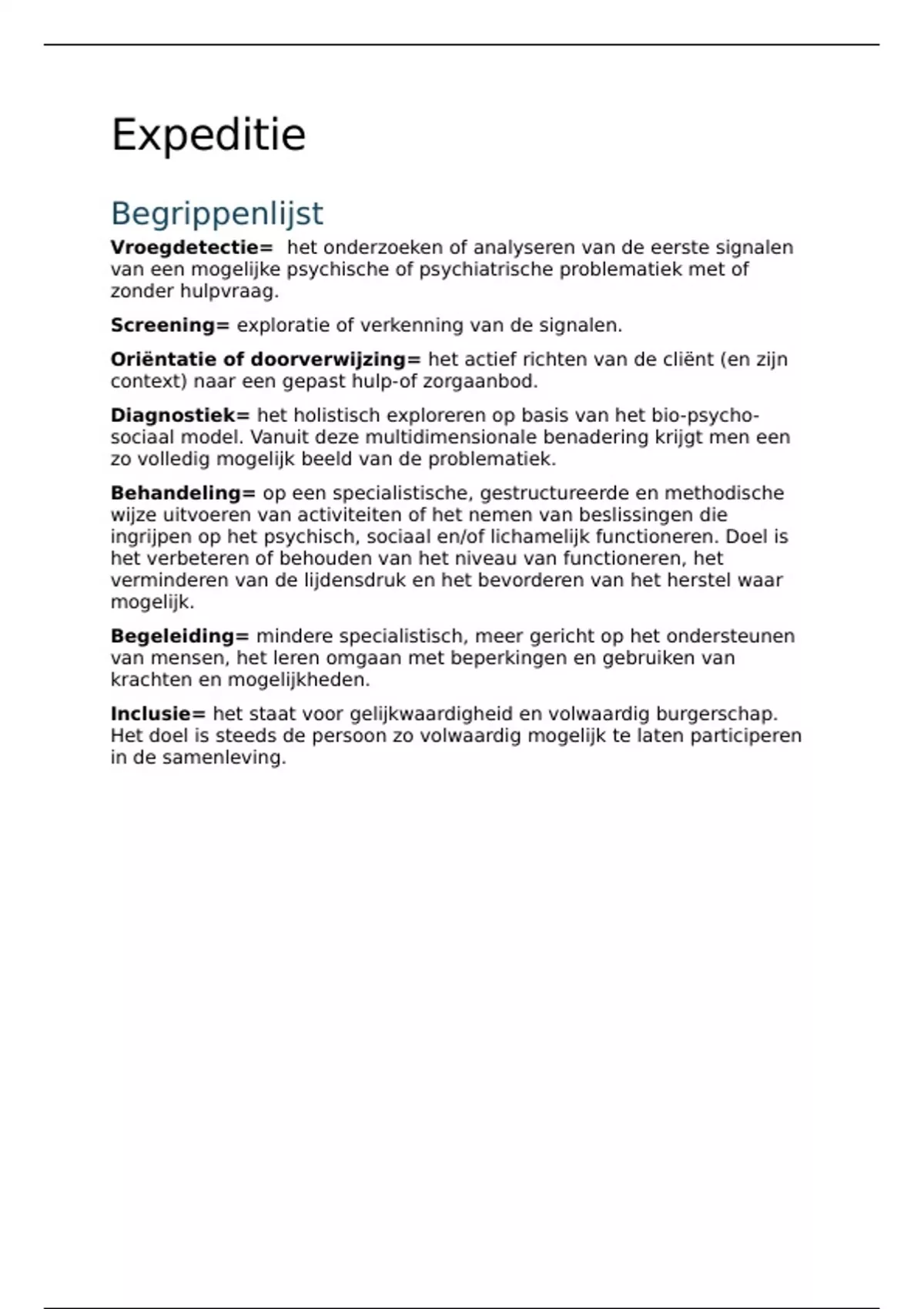 Stepped care principe = je begint onderaan met zo weinig mogelijk