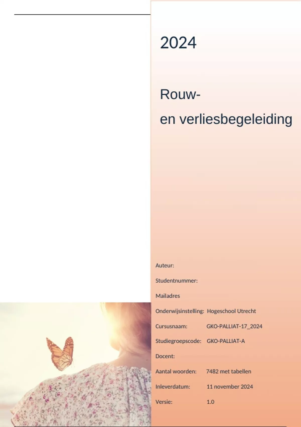 Dit verslag is een onderdeel van het vak ‘Rouw- en verliesverwerking’ en valt onder de keuzecursus