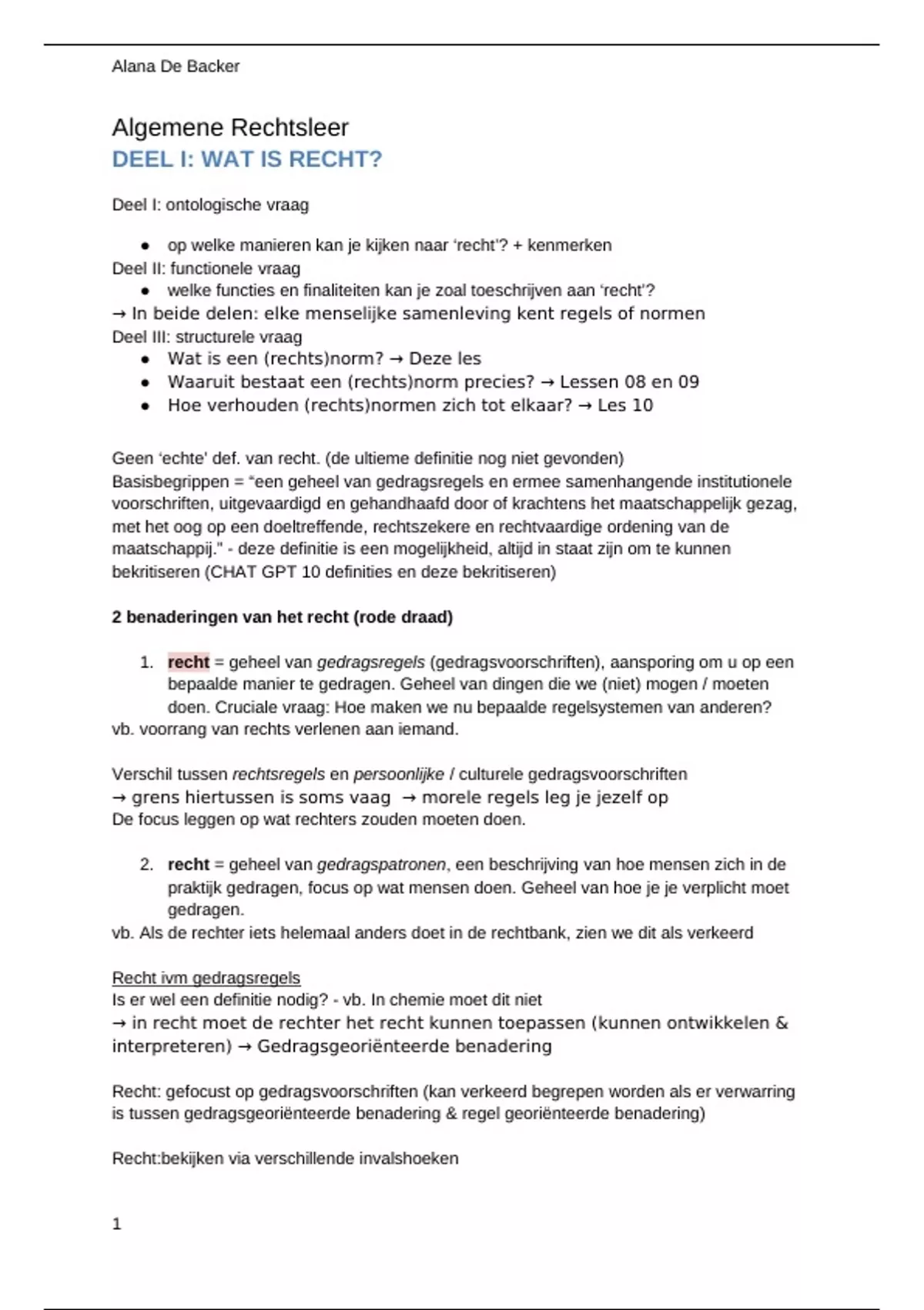 DEEL I: WAT IS RECHT?