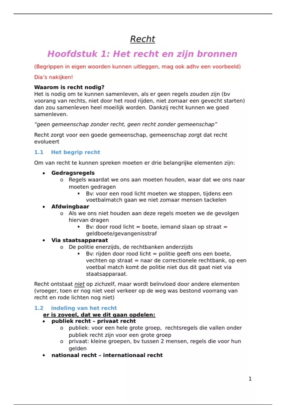 Hoofdstuk 1: Het recht en zijn bronnen