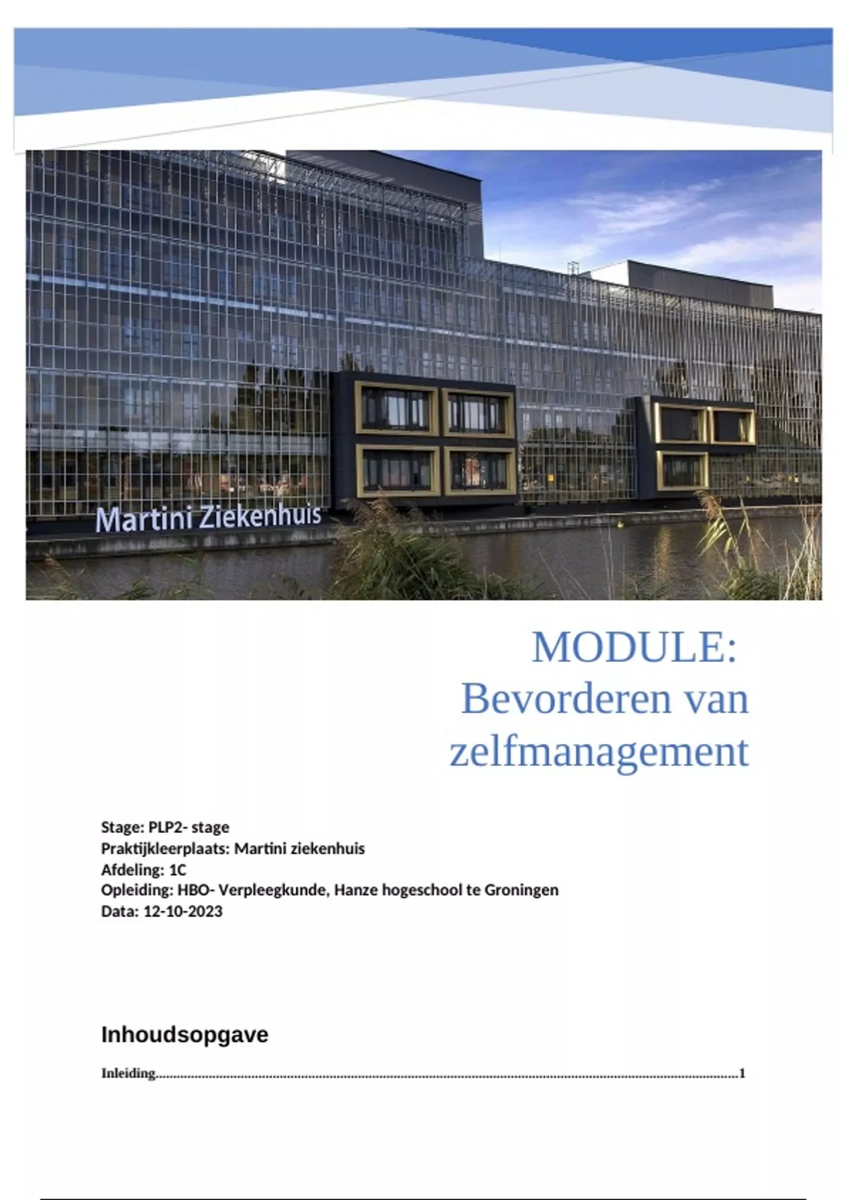 Dit verslag is geschreven tijdens mijn PLP2-stage op de afdeling Neurologie van het Martini Ziekenhuis. Het bevat de uitwerking van de module Bevorderen van Zelfmanagement en Samenredzaamheid en richt zich op de manieren waarop patiënten worden ondersteund in het nemen van regie over hun eigen zorgproces. In dit verslag deel ik mijn ervaringen, inzichten en de praktische toepassing van deze belangrijke thema’s in de klinische praktijk.