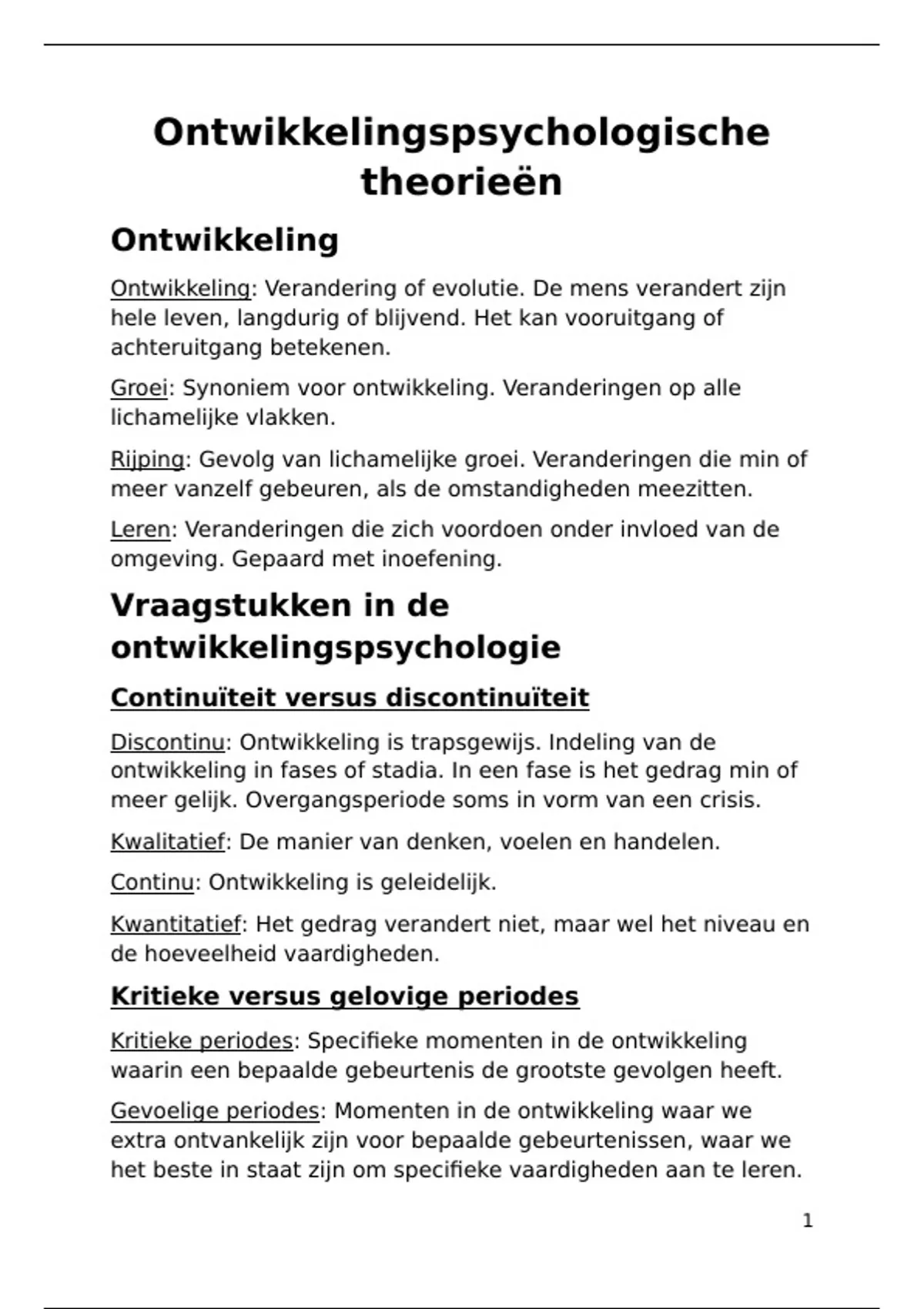 Discontinu: Ontwikkeling is trapsgewijs. Indeling van de