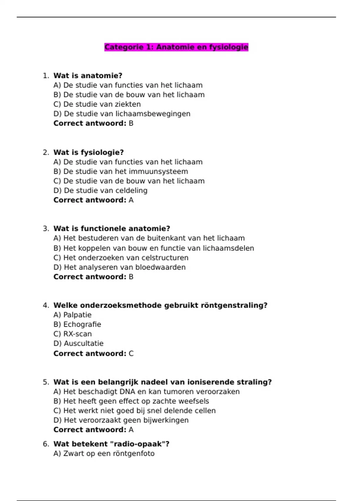 Categorie 1: Anatomie en fysiologie