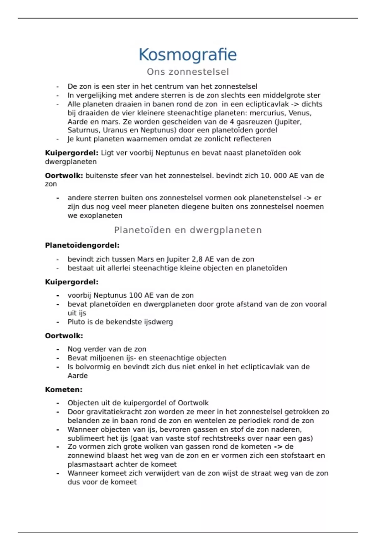 - bevat planetoïden en dwergplaneten door grote afstand van de zon vooral