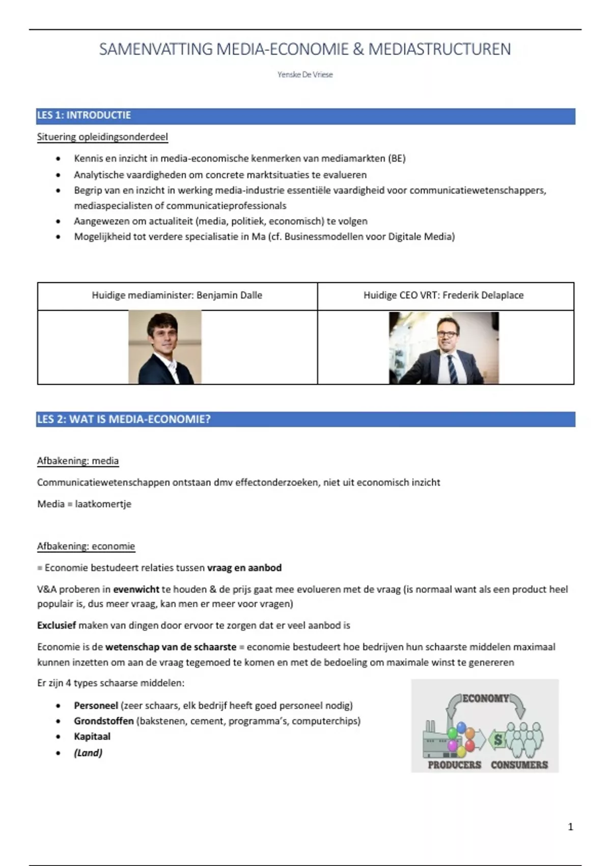 SAMENVATTING MEDIA-ECONOMIE & MEDIASTRUCTUREN