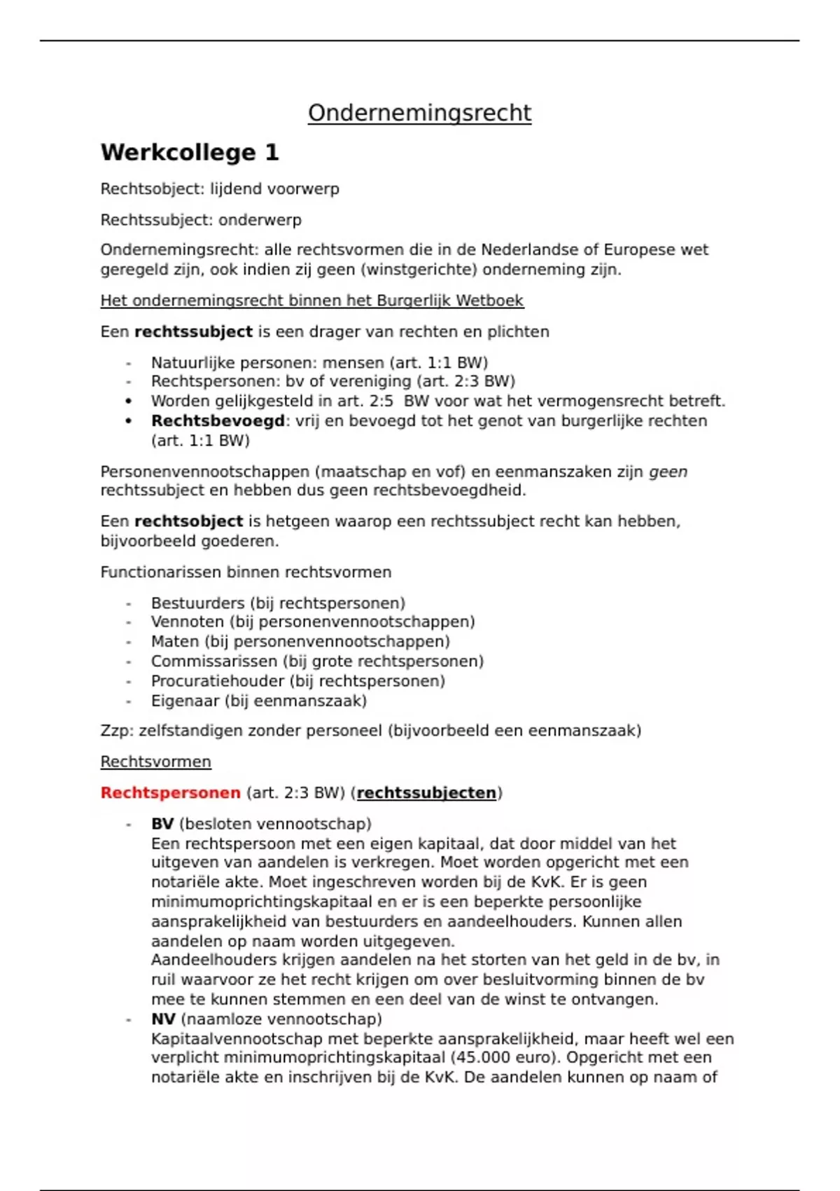 Ondernemingsrecht: alle rechtsvormen die in de Nederlandse of Europese wet