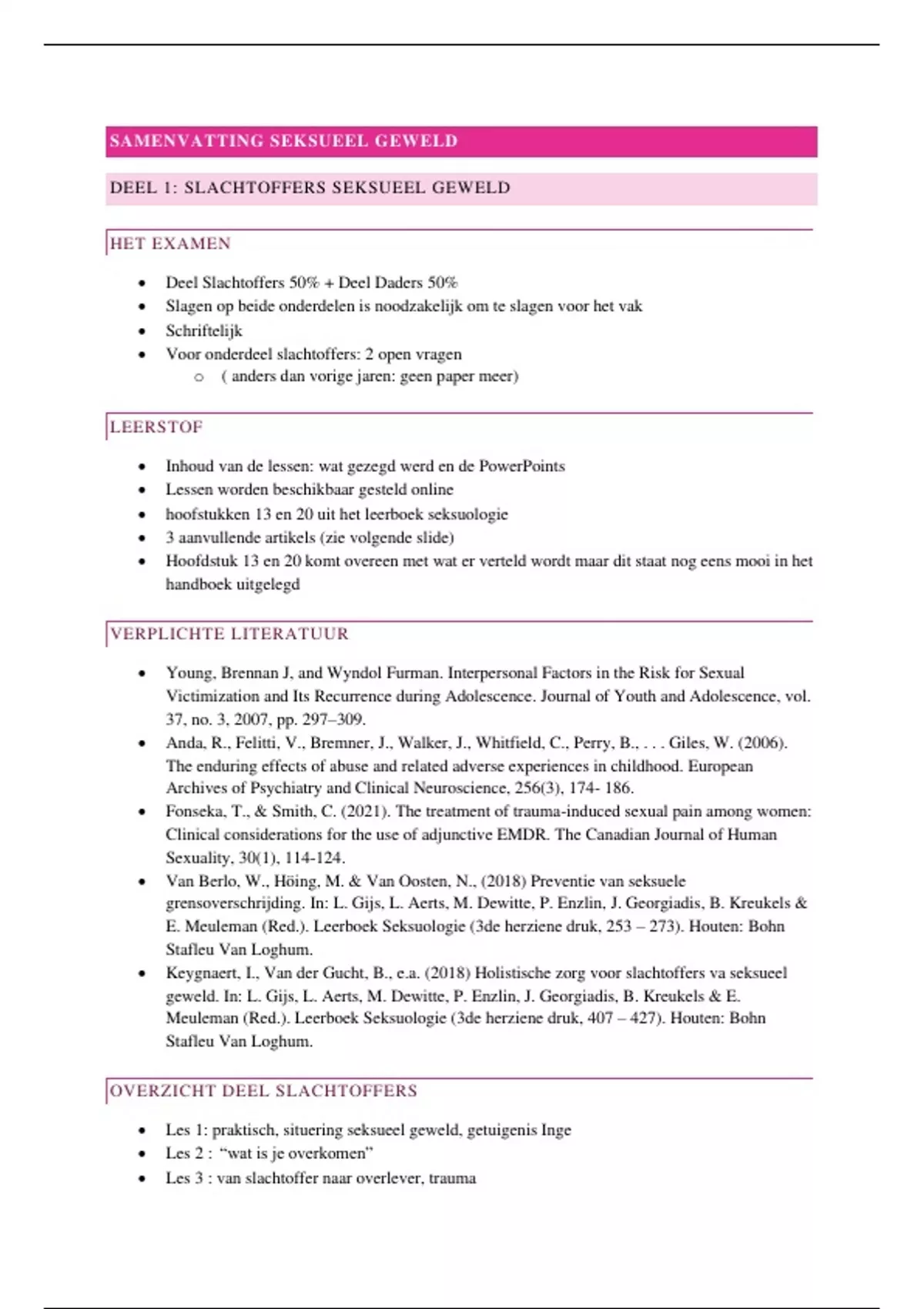 • hoofstukken 13 en 20 uit het leerboek seksuologie