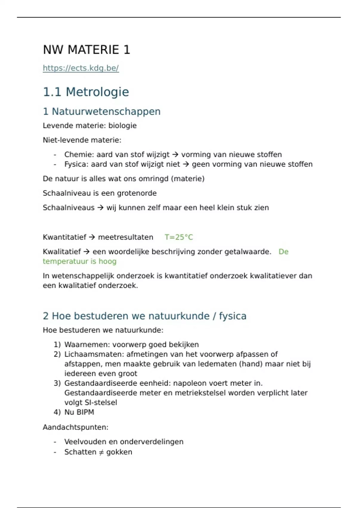 Samenvatting materie 1ste jaar sep-okt