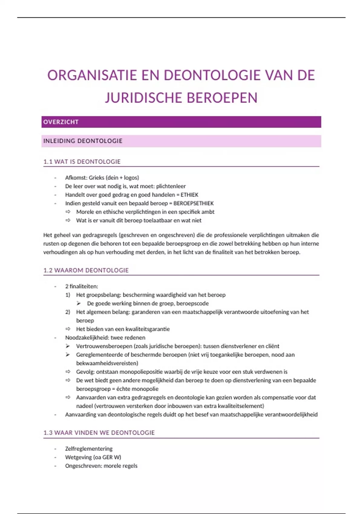 18/20!! Samenvatting Organisatie en Deontologie 2024/2025