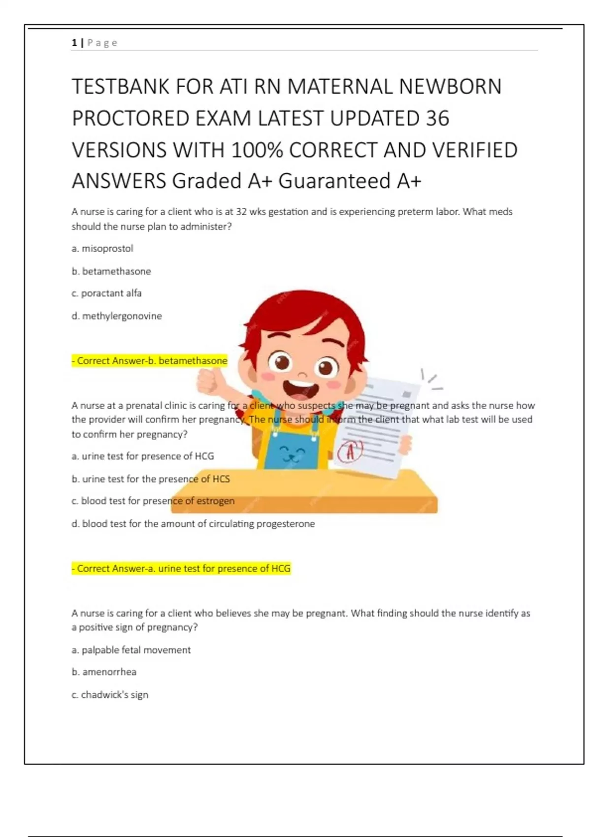 TESTBANK FOR ATI RN MATERNAL NEWBORN