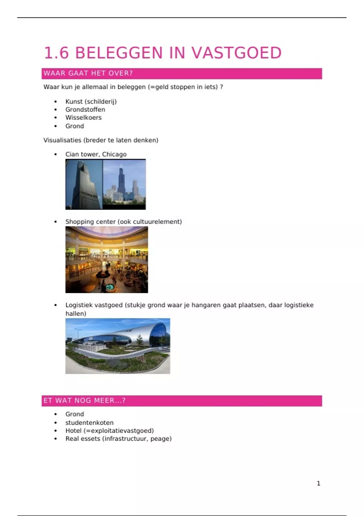1.6 BELEGGEN IN VASTGOED