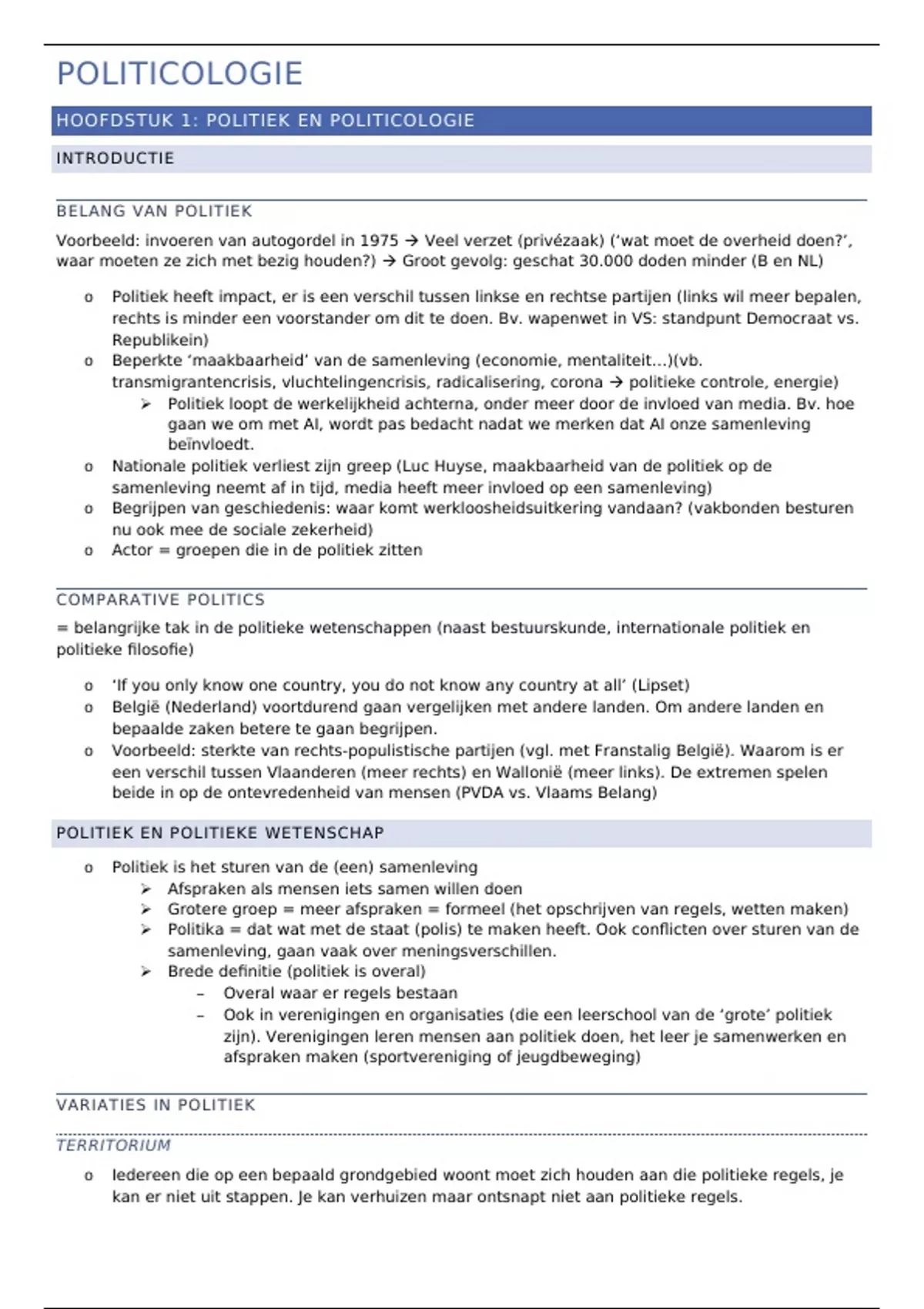 HOOFDSTUK 1: POLITIEK EN POLITICOLOGIE