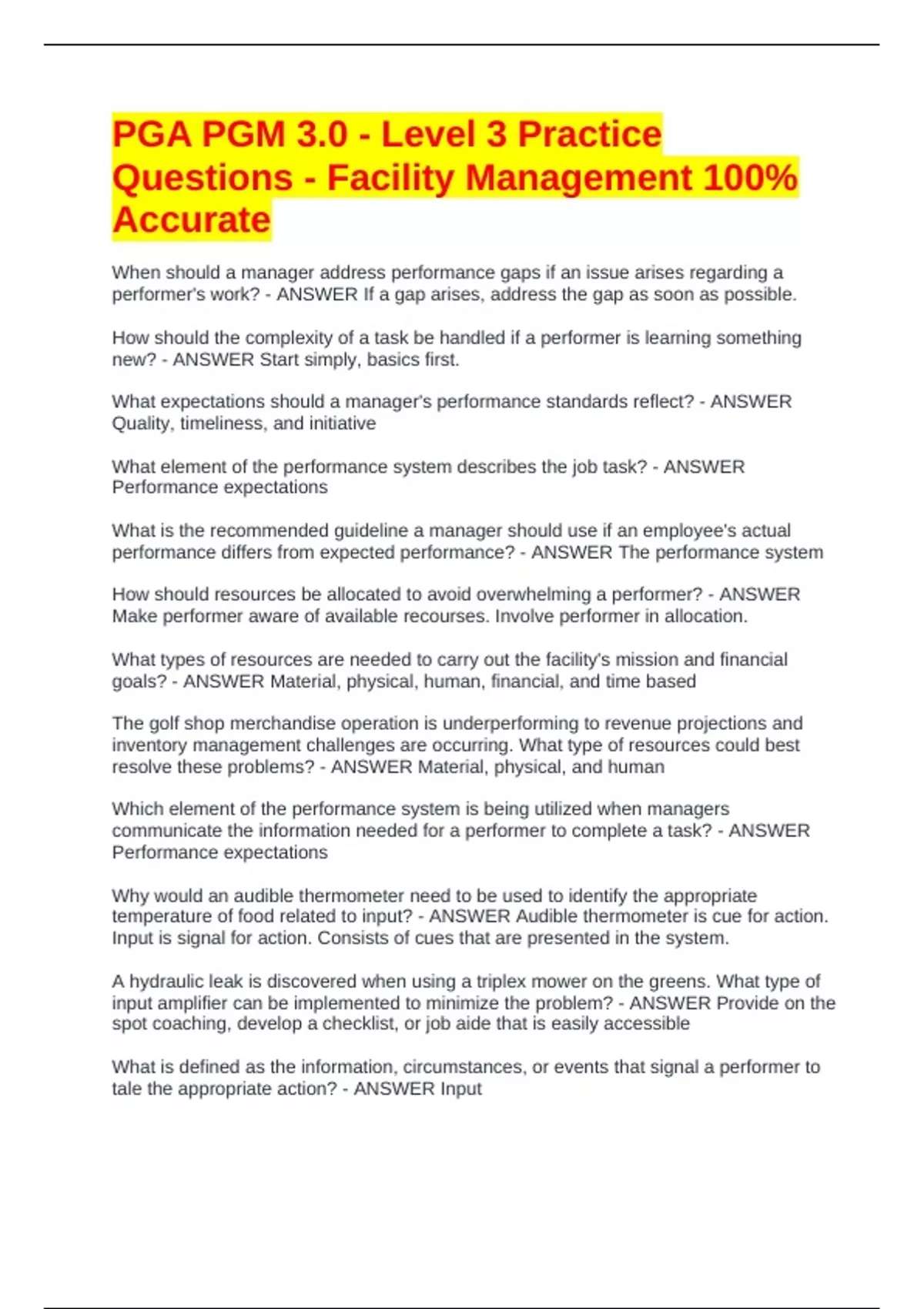 Questions - Facility Management 100%