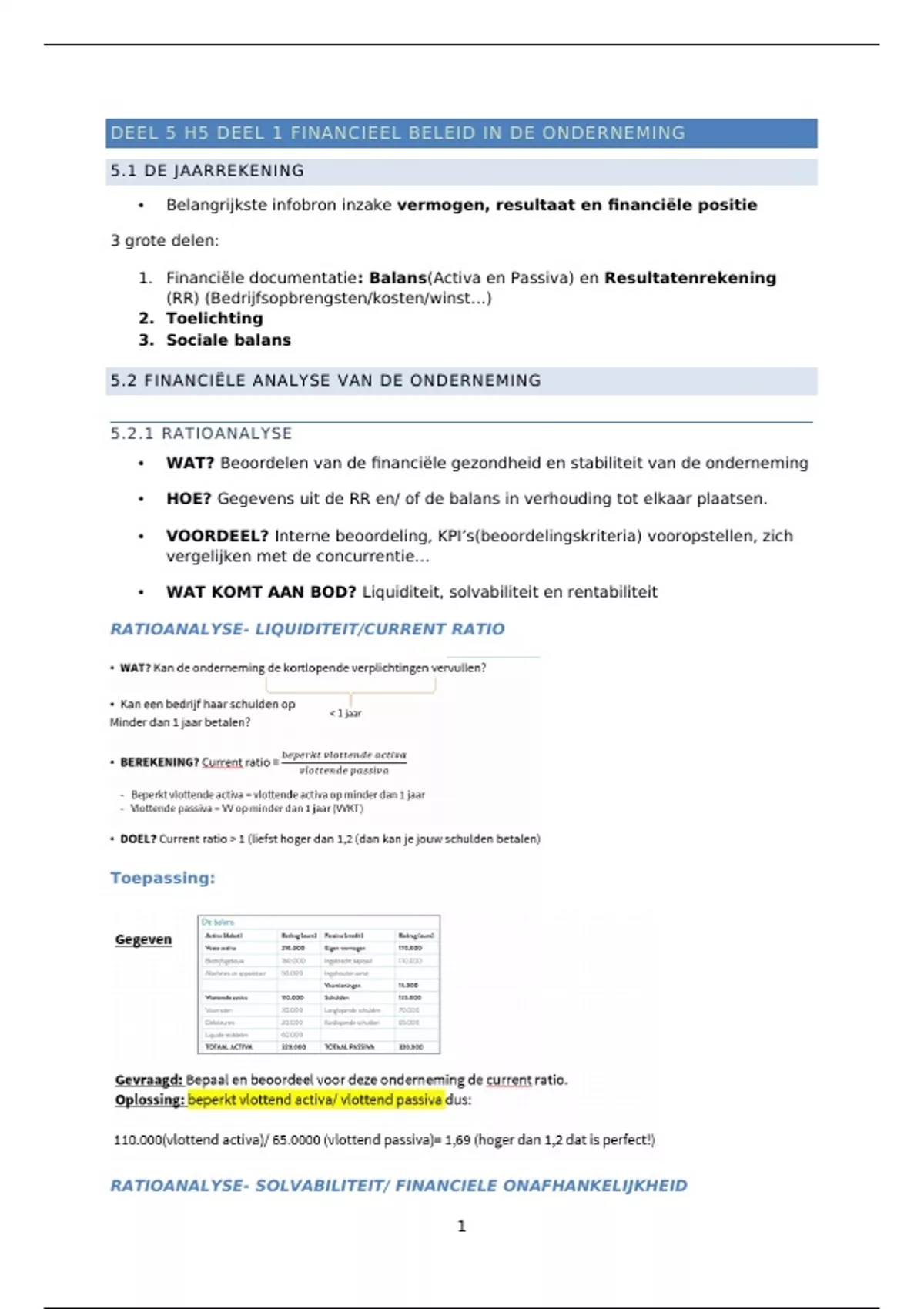 DEEL 5 H5 DEEL 1 FINANCIEEL BELEID IN DE ONDERNEMING