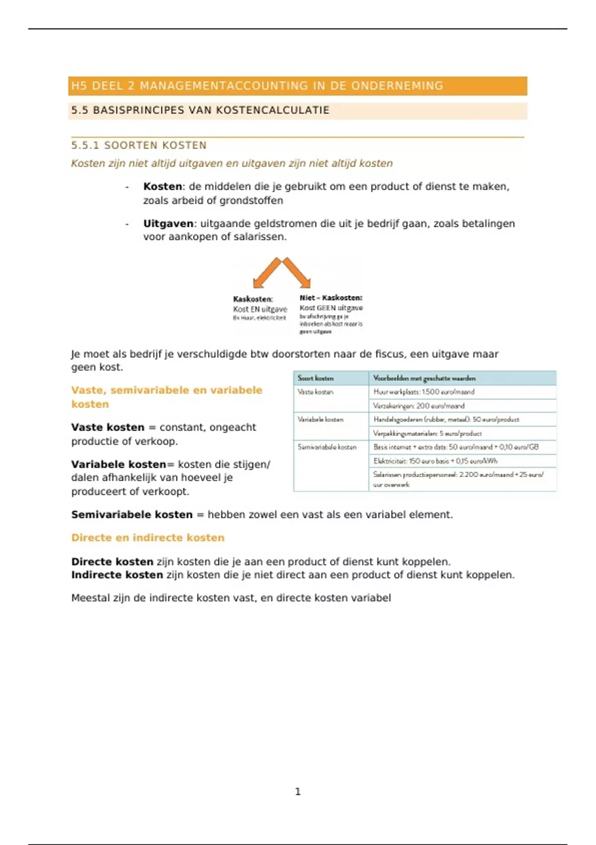 H5 DEEL 2 MANAGEMENTACCOUNTING IN DE ONDERNEMING