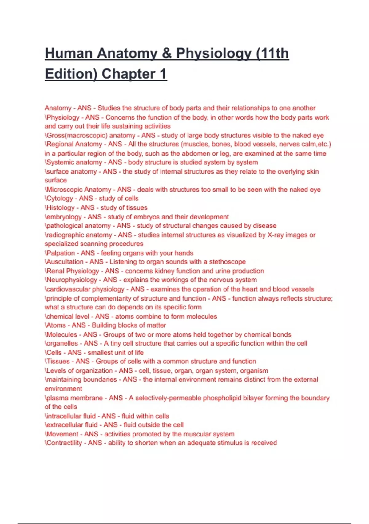 Anatomy - ANS - Studies the structure of body parts and their relationships to one another