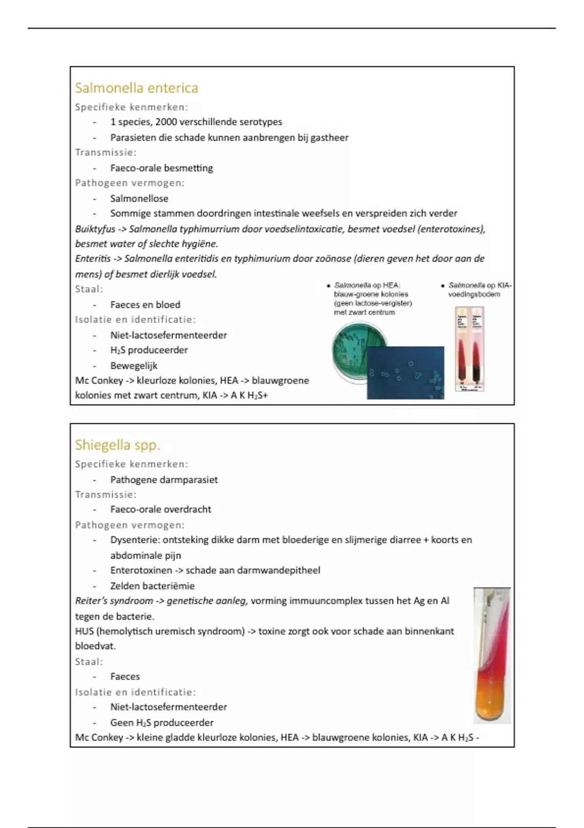 Mc Conkey -> kleine gladde kleurloze kolonies, HEA -> blauwgroene kolonies, KIA -> A K H2S –