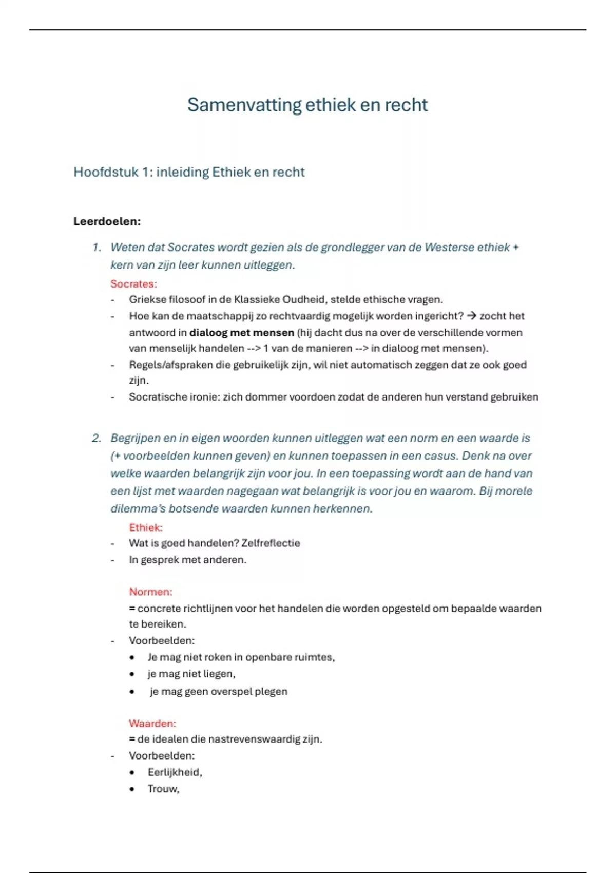 Samenvatting ethiek en recht