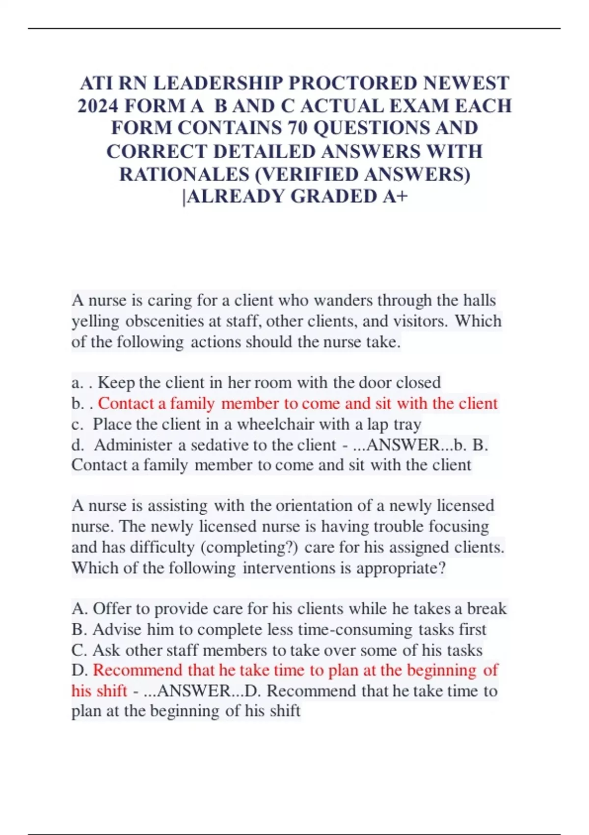 d. Administer a sedative to the client - ...ANSWER...b. B.